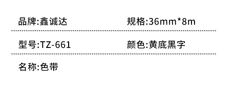 鑫诚达 TZ-661,36mmX8m,黄底黑字 色带 (计价单位:盒) 黄色 黄色