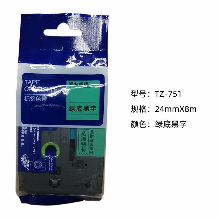 鑫诚达 TZ-751,24mmX8m,绿底黑字 色带 (计价单位:盒) 绿色 绿色