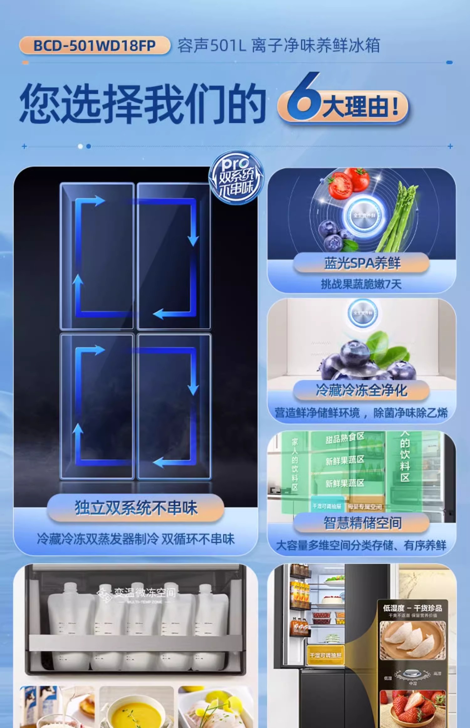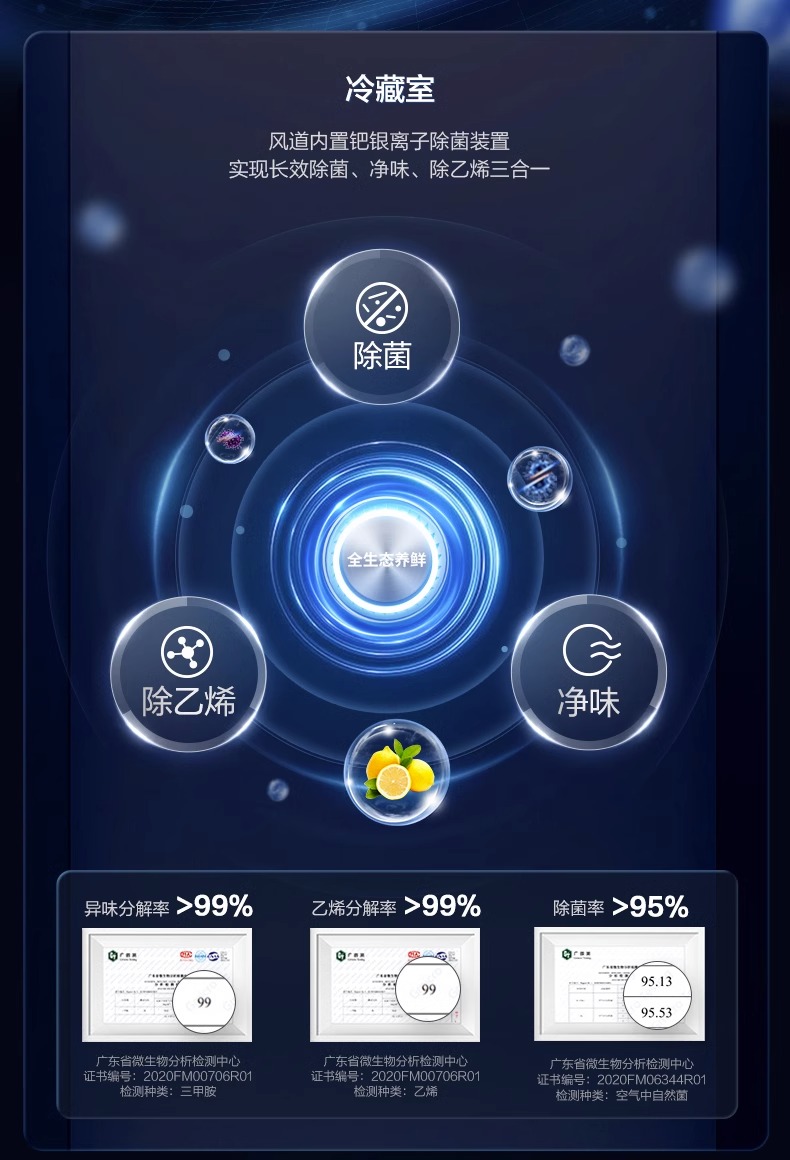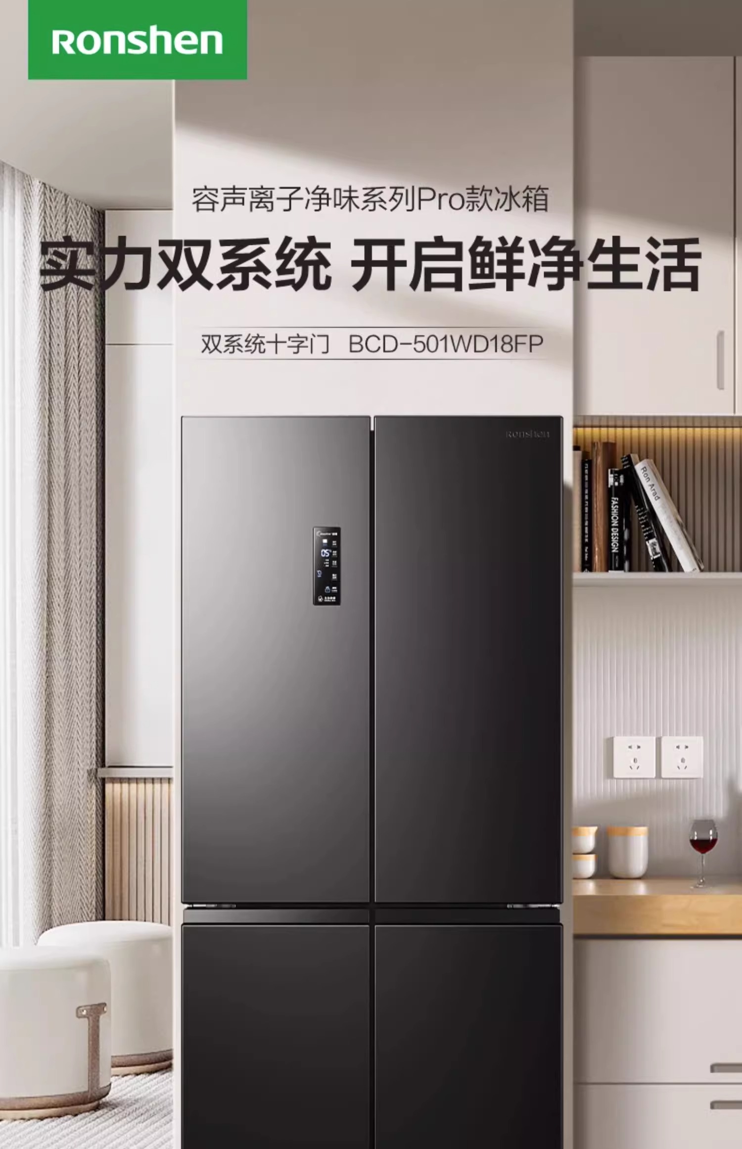 容声(Ronshen)501升电冰箱 双循环不串味风冷无霜离子净味BCD-501WD18FP单位:台 墨韵灰