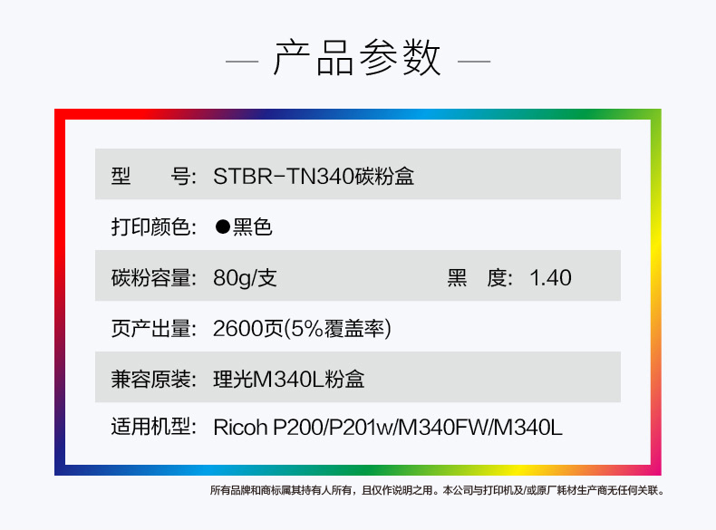史泰博 STBR-TN340 打印页数2600页 适用机型Ricoh P200/P201W/M340FW/M340L 碳粉盒 (计价单位:只) 黑色 黑色