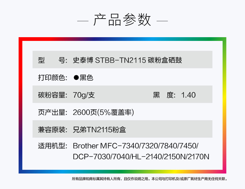 史泰博 STBB-TN2115 打印量约2600页 适用Brother MFC-7340/7320等 硒鼓 1.00 只/盒 (计价单位:盒) 黑色 黑色