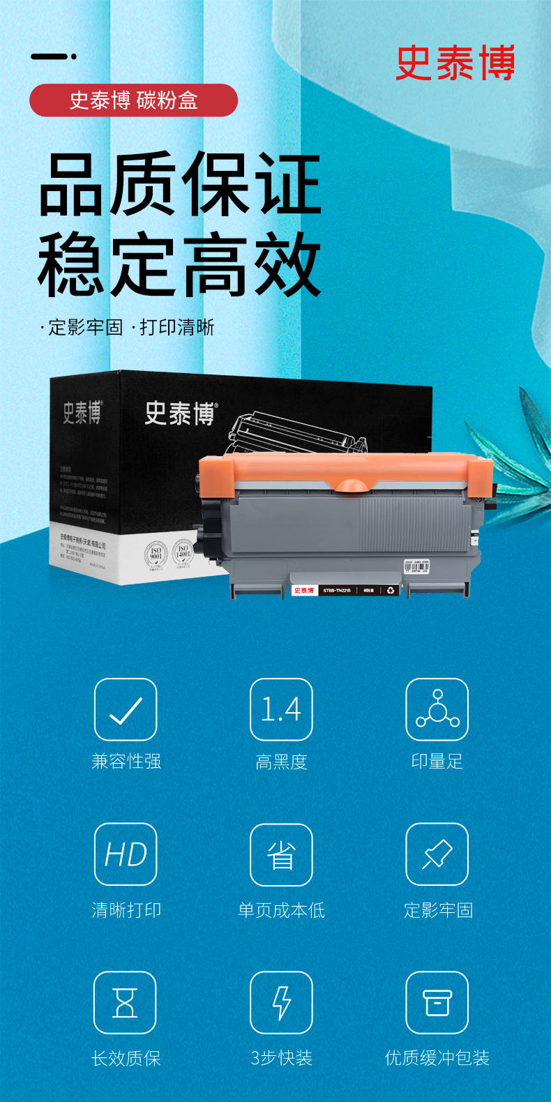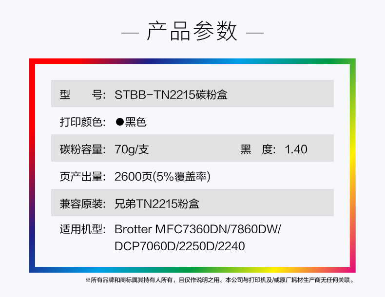 史泰博 STBB-TN2215 打印量约2600页 适用Brother HL2240D/2230等 硒鼓 1.00 只/盒 (计价单位:盒) 黑色 黑色