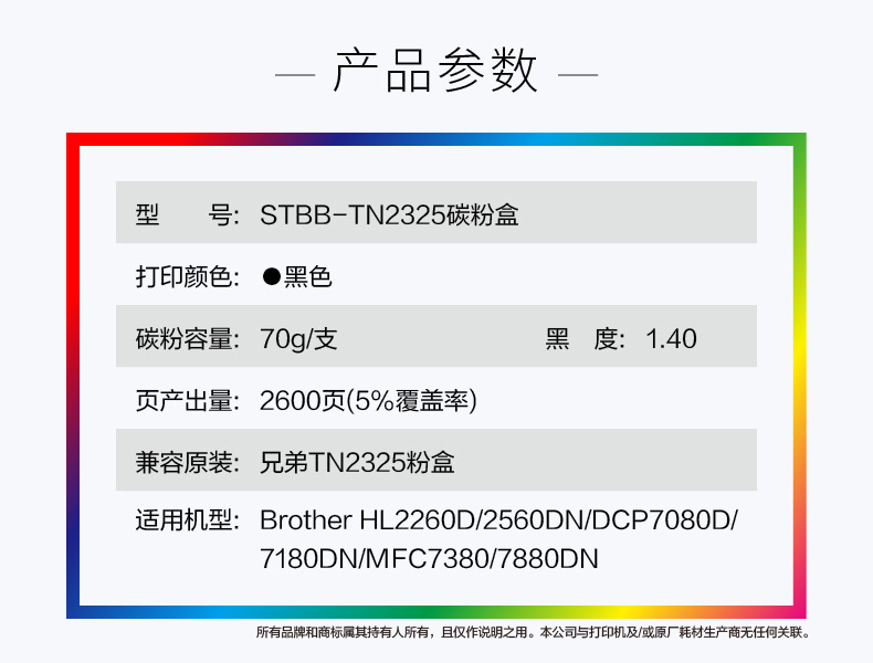 史泰博 STBB-TN2325 打印量约2600页 适用Brother HL2260D 2560DN等 硒鼓 1.00 只/盒 (计价单位:盒) 黑色 黑色