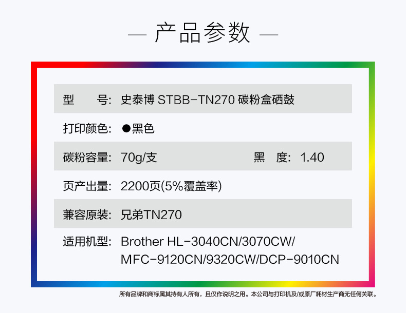 史泰博 STBB-TN270 打印量约2200页 适用Brother HL-3040CN 3070CW等 硒鼓 1.00 只/盒 (计价单位:盒) 黑色 黑色