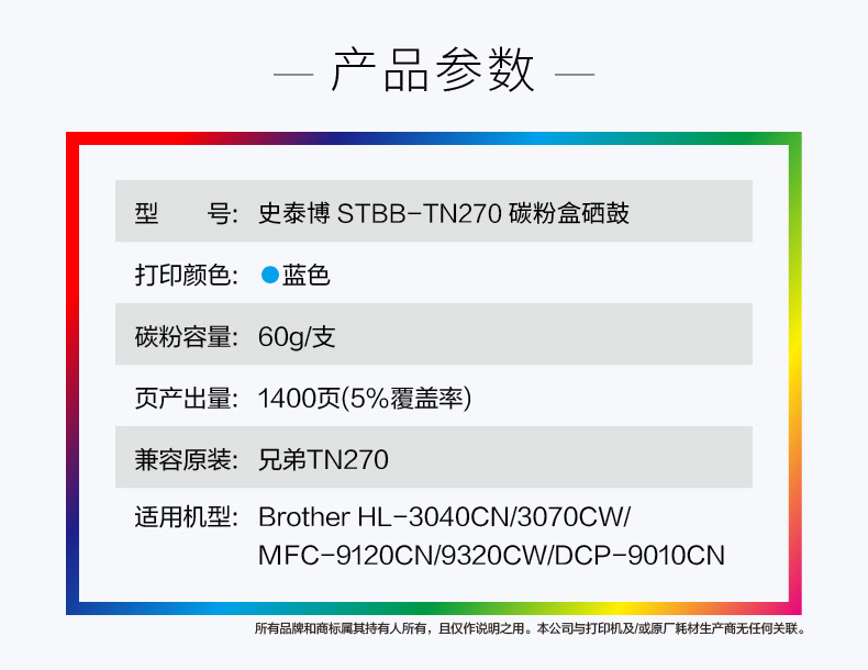 史泰博 STBB-TN270 打印量约1400页 适用Brother HL-3040CN 3070CW等 硒鼓 1.00 只/盒 (计价单位:盒) 蓝色 蓝色