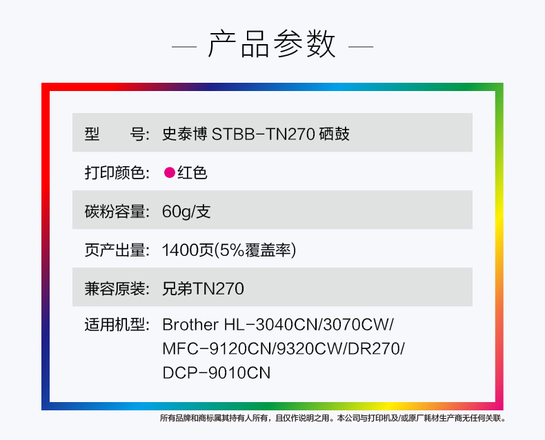 史泰博 STBB-TN270 打印量约1400页 适用Brother HL-3040CN 3070CW DR270等 硒鼓 1.00 只/盒 (计价单位:盒) 红色 红色