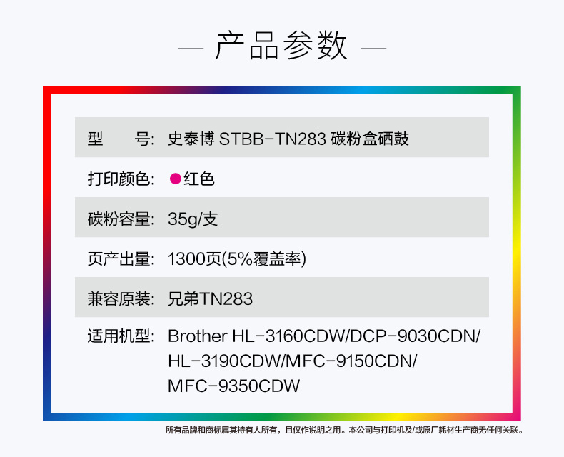 史泰博 STBB-TN283 打印量约1300页 适用Brother HL-3160CDW DCP-9030CDN MFC-9150CDN等 硒鼓 1.00 只/盒 (计价单位:盒) 红色 红色