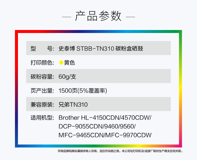 史泰博 STBB-TN310 打印量约1500页 适用HL-4150CDN 4570CDW DCP-9055CDN 9460等 硒鼓 1.00 只/盒 (计价单位:盒) 黄色 黄色