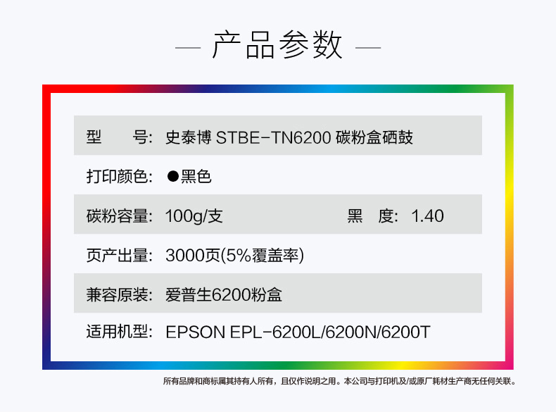 史泰博 STBE-TN6200 打印量约3000页 适用EPL-6200L 6200N/6200T等 硒鼓 1.00 只/盒 (计价单位:盒) 黑色 黑色