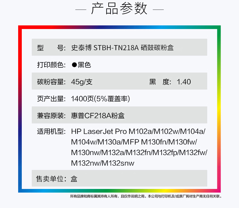 史泰博 STBH-TN218A 打印量约1400页 适用HP LaserJet Pro M102a等 硒鼓 1.00 只/盒 (计价单位:盒) 黑色 黑色