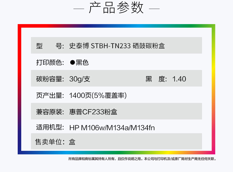 史泰博 STBH-TN233 打印量约1400页 适用HP M106w/M134a等 硒鼓 1.00 只/盒 (计价单位:盒) 黑色 黑色