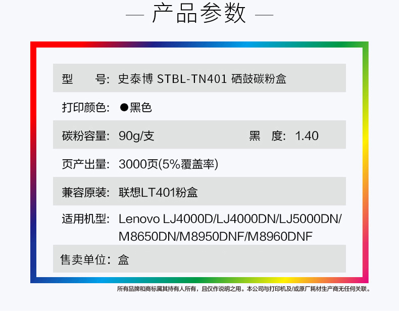 史泰博 STBL-TN401 打印量约3000页 适用Lenovo LJ4000D/LJ4000DN等 硒鼓 1.00 只/盒 (计价单位:盒) 黑色 黑色