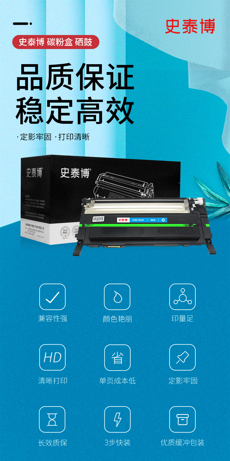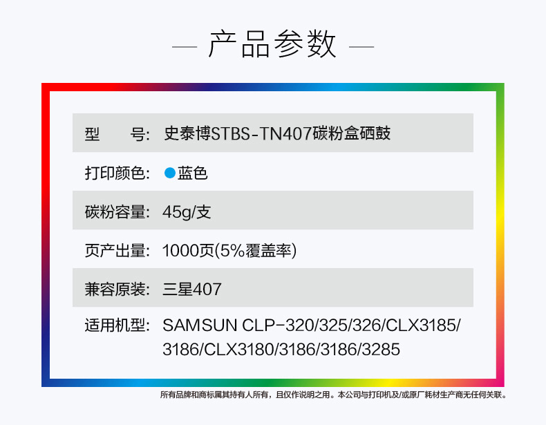 史泰博 STBS-TN407 打印量约1000页 适用SAMSUNG CLP-320/325等 硒鼓 1.00 只/盒 (计价单位:盒) 蓝色 蓝色