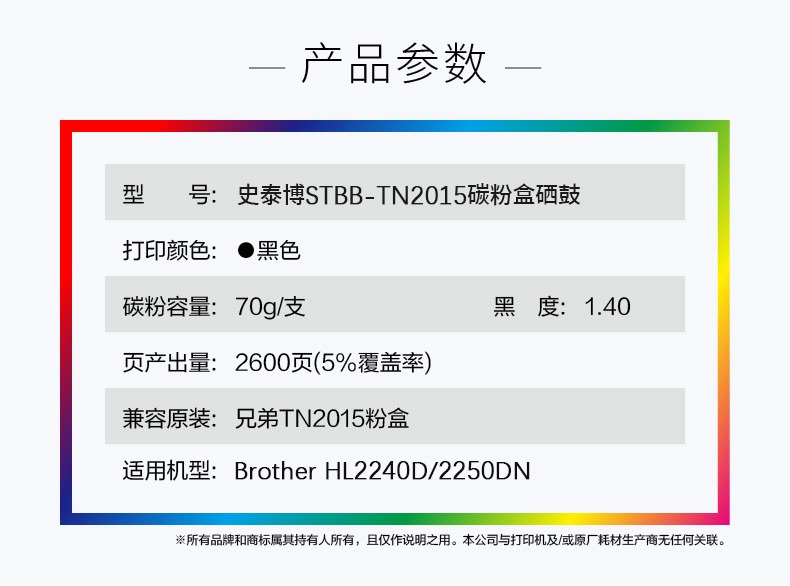 史泰博 STBB-TN2015 打印量约2600页 适用Brother HL2240D/2250DN等 硒鼓 1.00 只/盒 (计价单位:盒) 黑色 黑色