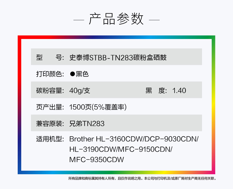 史泰博 STBB-TN283 打印量约1500页 适用Brother HL-3160CDW DCP-9030CDN等 硒鼓 1.00 只/盒 (计价单位:盒) 黑色 黑色