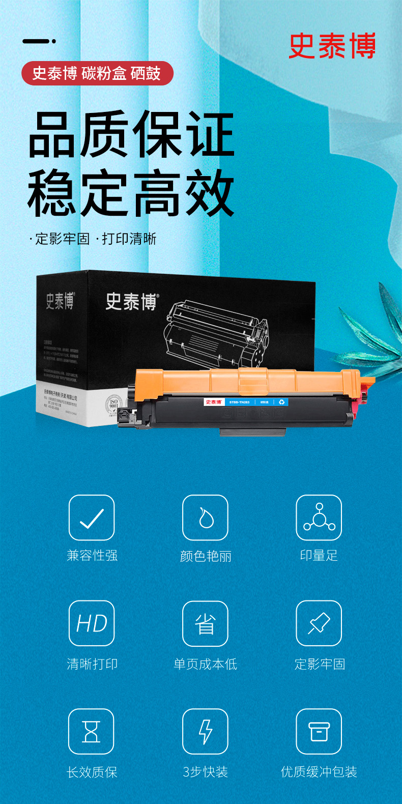 史泰博 STBB-TN283 打印量约1300页 适用Brother HL-3160CDW DCP-9030CDN等 硒鼓 1.00 只/盒 (计价单位:盒) 蓝色 蓝色
