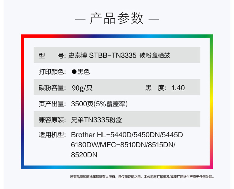 史泰博 STBB-TN3335 打印量约3500页 适用Brother HL-5440D 5450DN等 硒鼓 1.00 只/盒 (计价单位:盒) 黑色 黑色