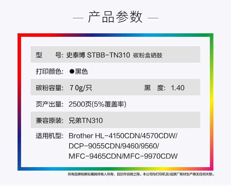 史泰博 STBB-TN310 打印量约2500页 适用HL-4150CDN 4570CDW DCP-9055CDN等 硒鼓 1.00 只/盒 (计价单位:盒) 黑色 黑色