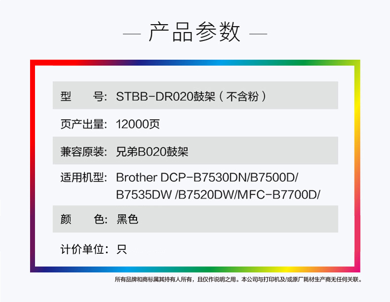 史泰博 STBB-DR020 打印量约12000页 适用Brother DCP-B7530DN B7500D等 鼓架(不含粉) (计价单位:只) 黑色 黑色