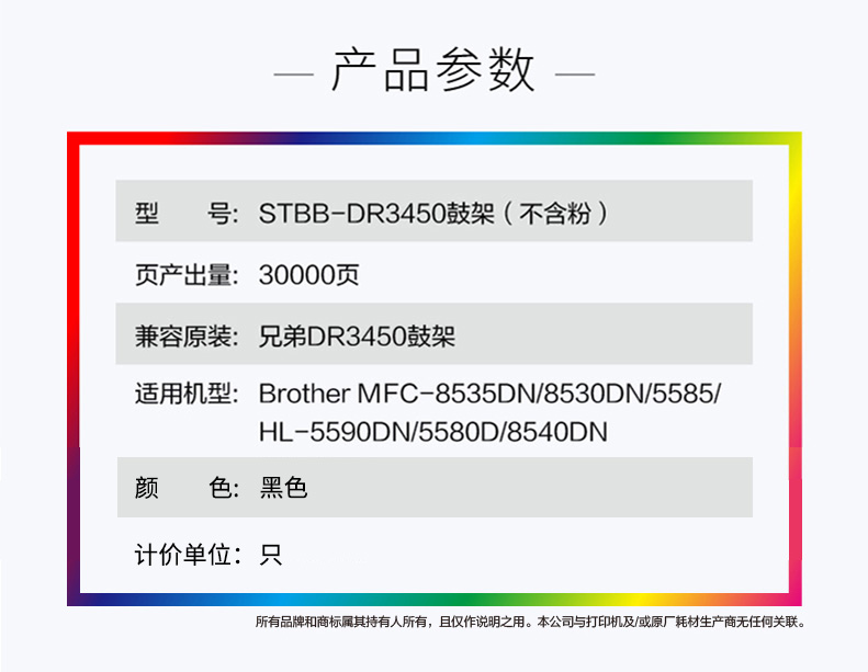 史泰博 STBB-DR3450 打印量约30000页 适用Brother MFC-8535DN 8530DN等 鼓架(不含粉) (计价单位:只) 黑色 黑色