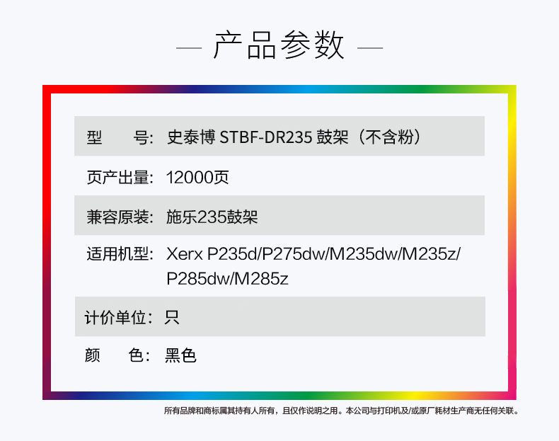 史泰博 STBF-DR235 打印量约12000页 适用Xerx P235d/P275dw/M235dw等 鼓架(不含粉) (计价单位:只) 黑色 黑色