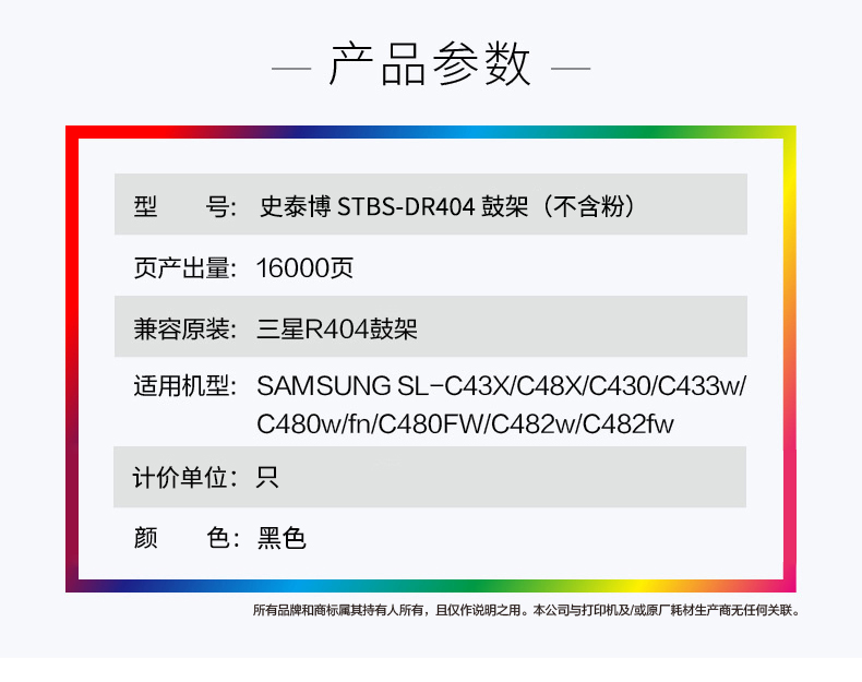 史泰博 STBS-DR404 打印量约16000页 适用SAMSUNG SL-C43X/C48X等 鼓架(不含粉) (计价单位:只) 黑色 黑色