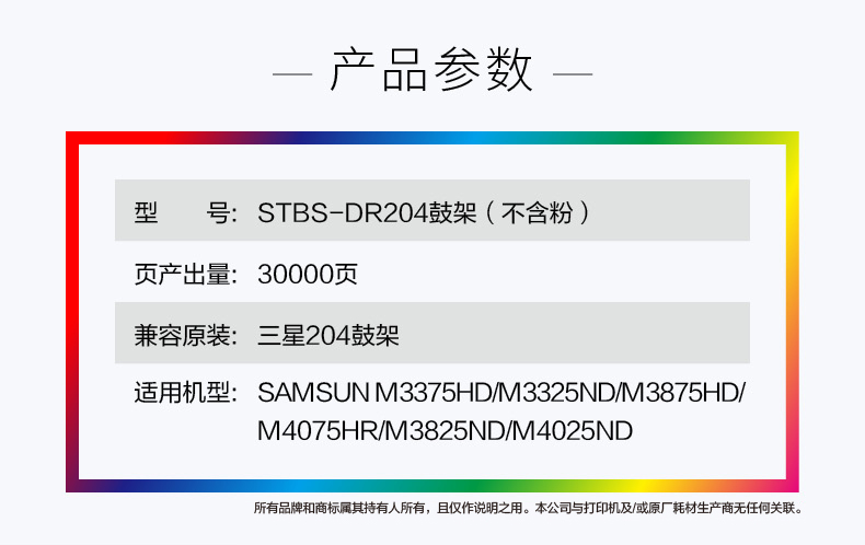 史泰博 STBS-DR204 打印量约30000页 适用SAMSUNG M3375HD/M3325ND等 鼓架(不含粉) (计价单位:只) 黑色 黑色