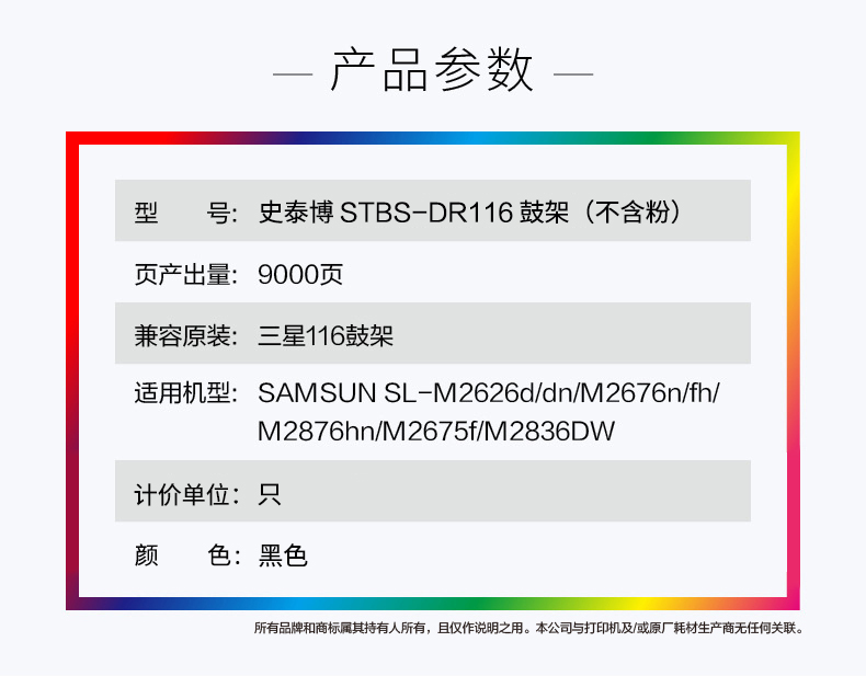 史泰博 STBS-DR116 打印量约9000页 适用SAMSUNG SL-m2626d/dn等 鼓架(不含粉) (计价单位:只) 黑色 黑色