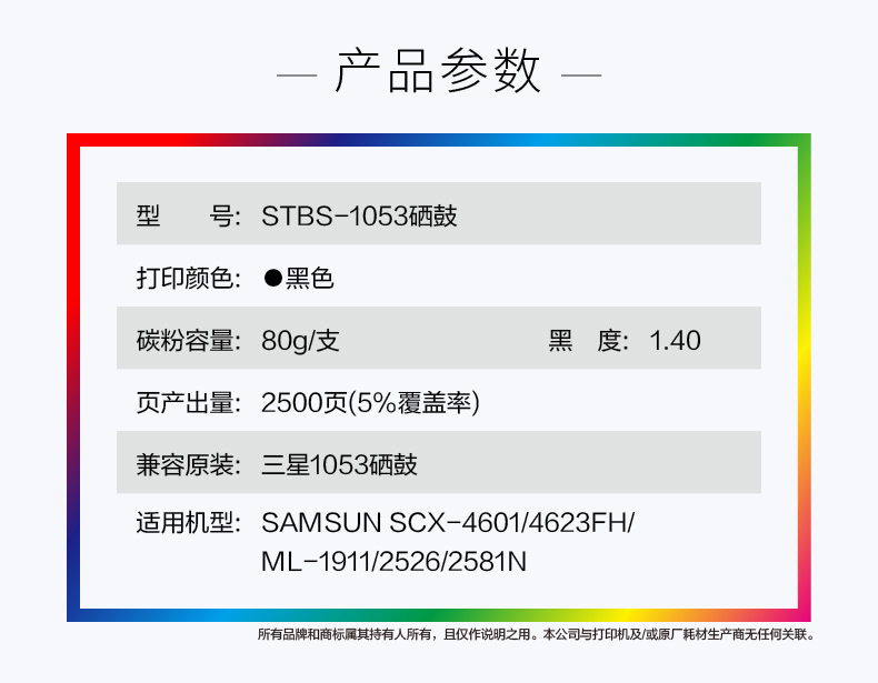 史泰博 STBS-1053 打印量约2500页 适用SAMSUNG SCX-4601/4623FH等 硒鼓 (计价单位:只) 黑色 黑色
