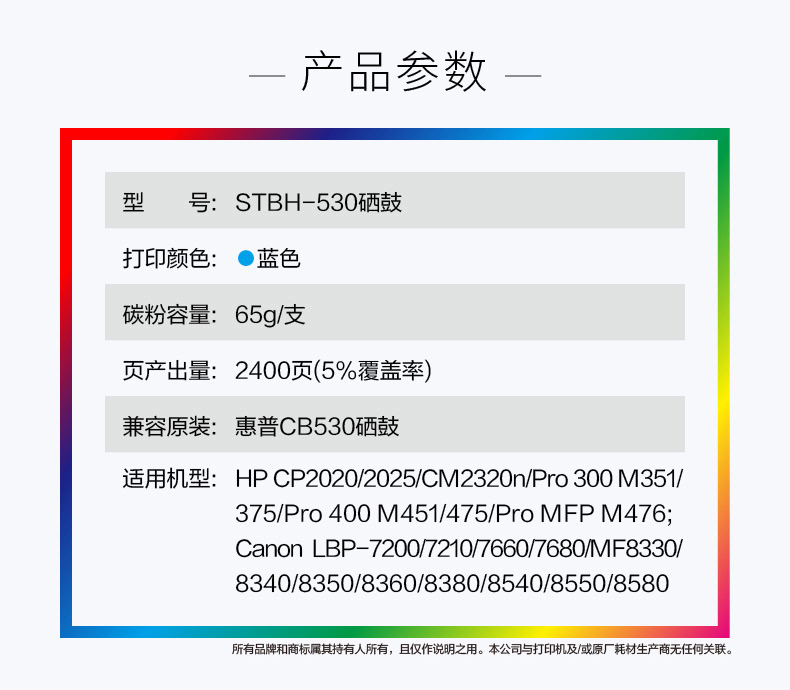 史泰博 STBH-530 打印量约2400页 适用HP CP2020/2025/CM2320n/Pro/300等 硒鼓 (计价单位:只) 蓝色 蓝色