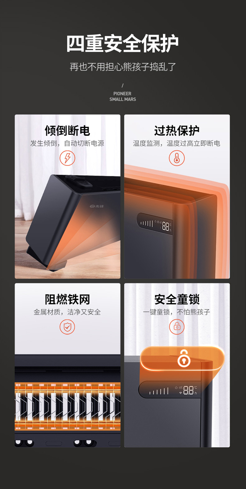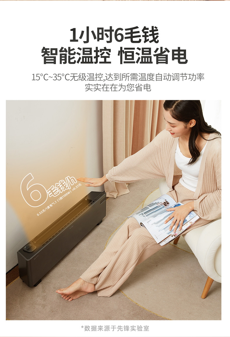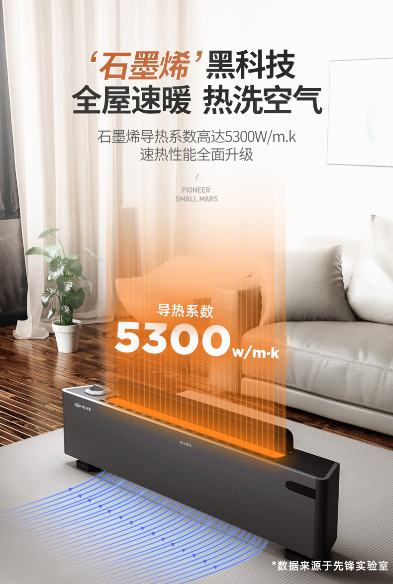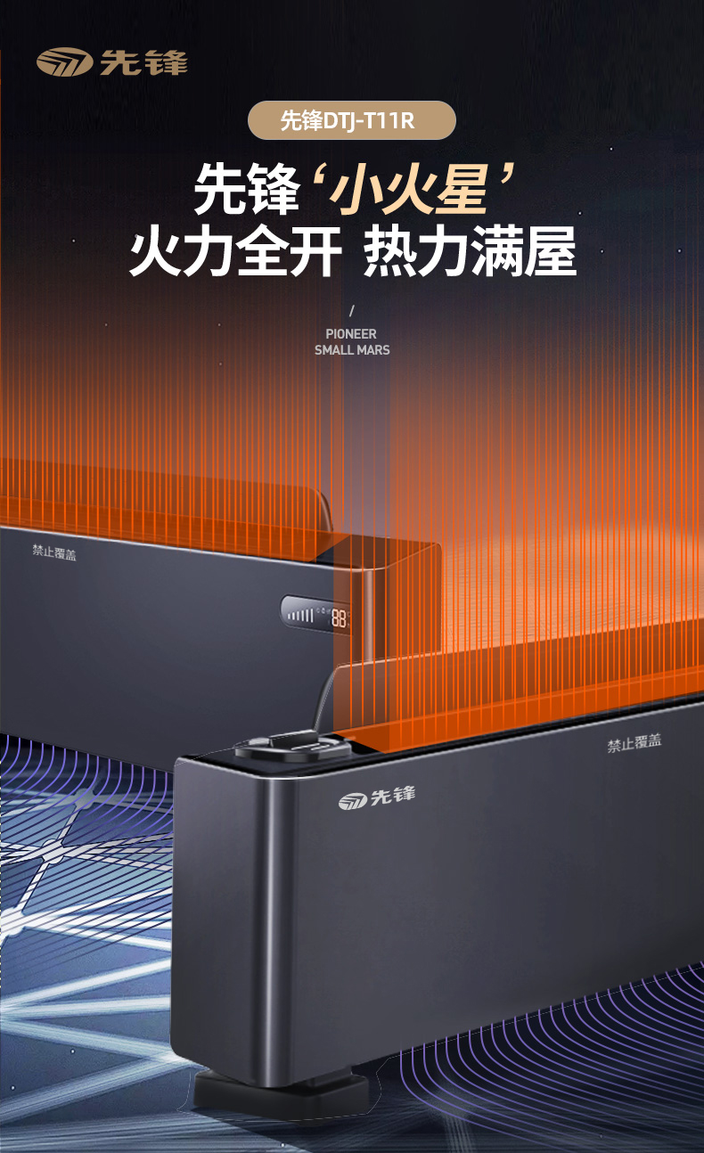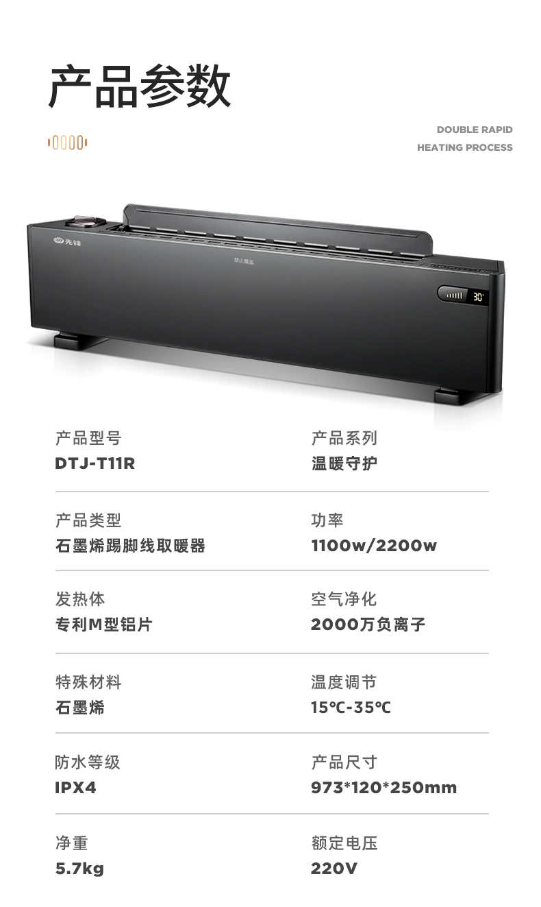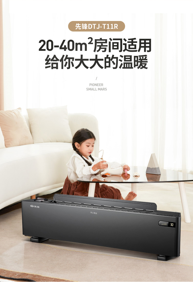 先锋(Singfun)真石墨烯踢脚线取暖器家用智能控温电暖气对流式遥控DTJ-T11R(单位:台) 墨色