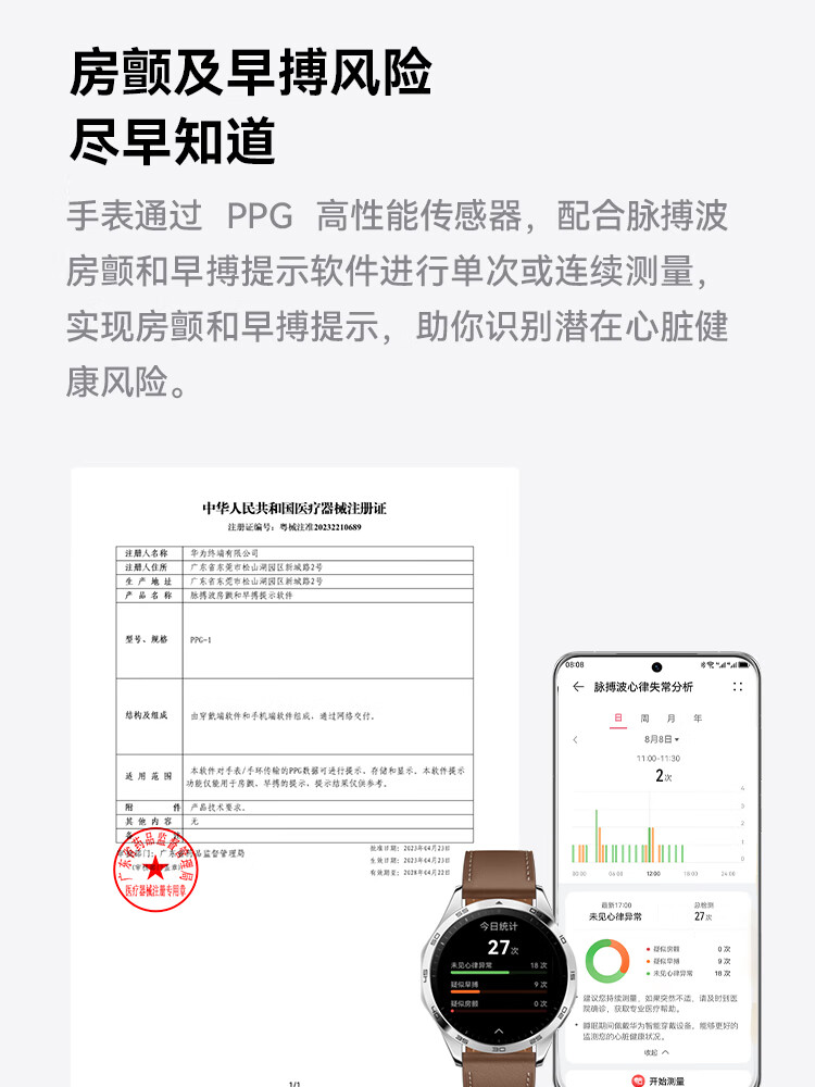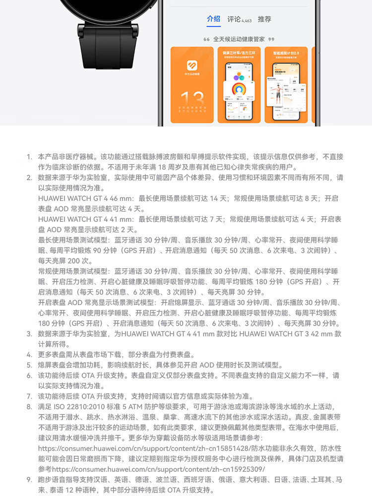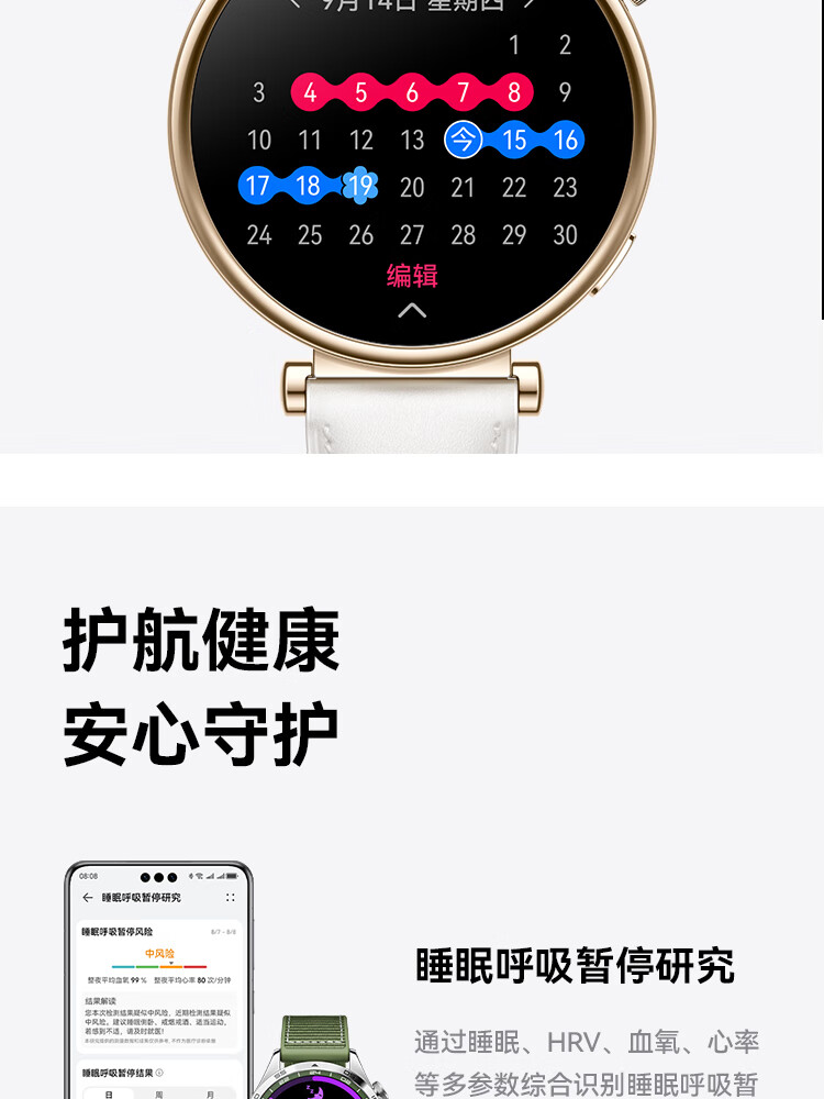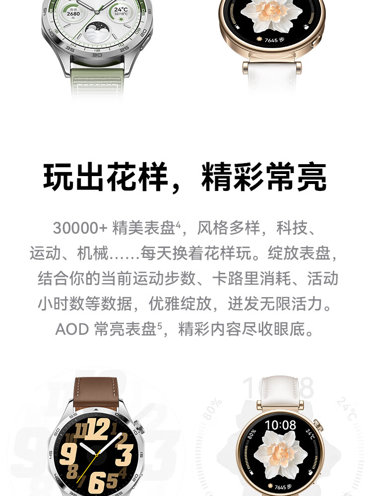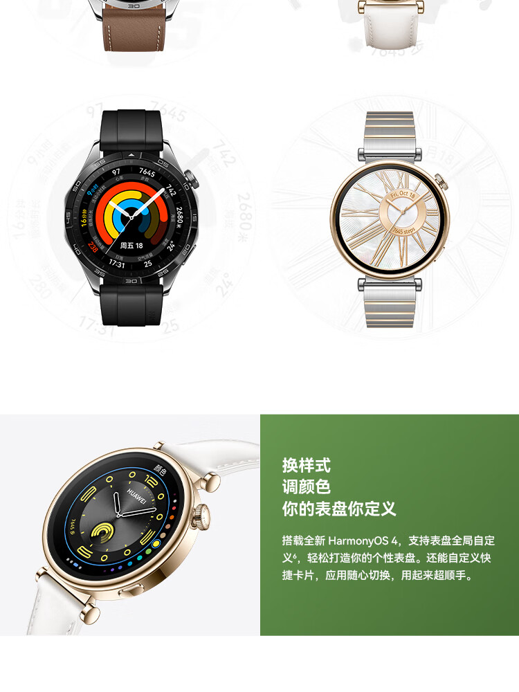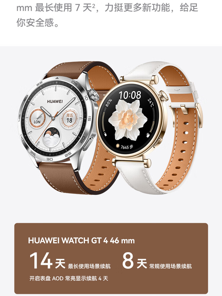华为 WATCH GT 4 运动智能心率血氧监测蓝牙通话手表 46mm(单位:台) 山茶棕 真皮表带