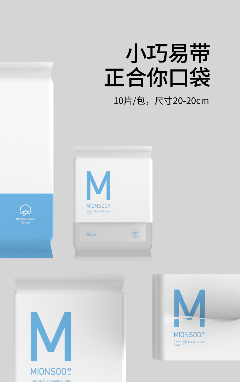 棉上随身便携装一次性洗脸巾 全棉洁面巾擦脸纯棉毛巾10片/包*6包(共计60片) 白色