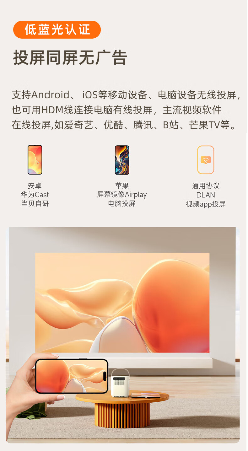 夏新835plus投影仪家用智能投影机家庭影院手机投影单位:台 白色