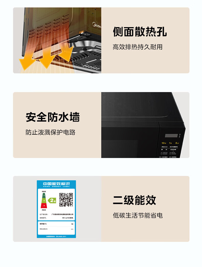 美的(Midea) 家用20L转盘加热微波炉 M21(单位:台) 黑色