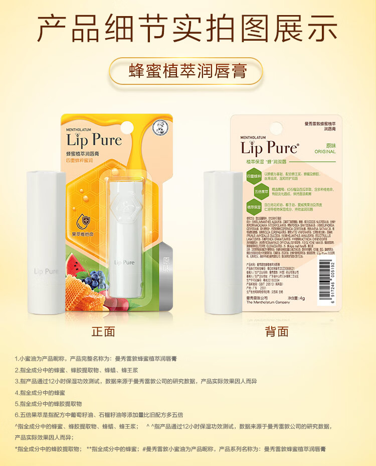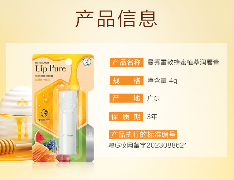 曼秀雷敦天然植物润唇膏(无香型)4g单位:支 白色