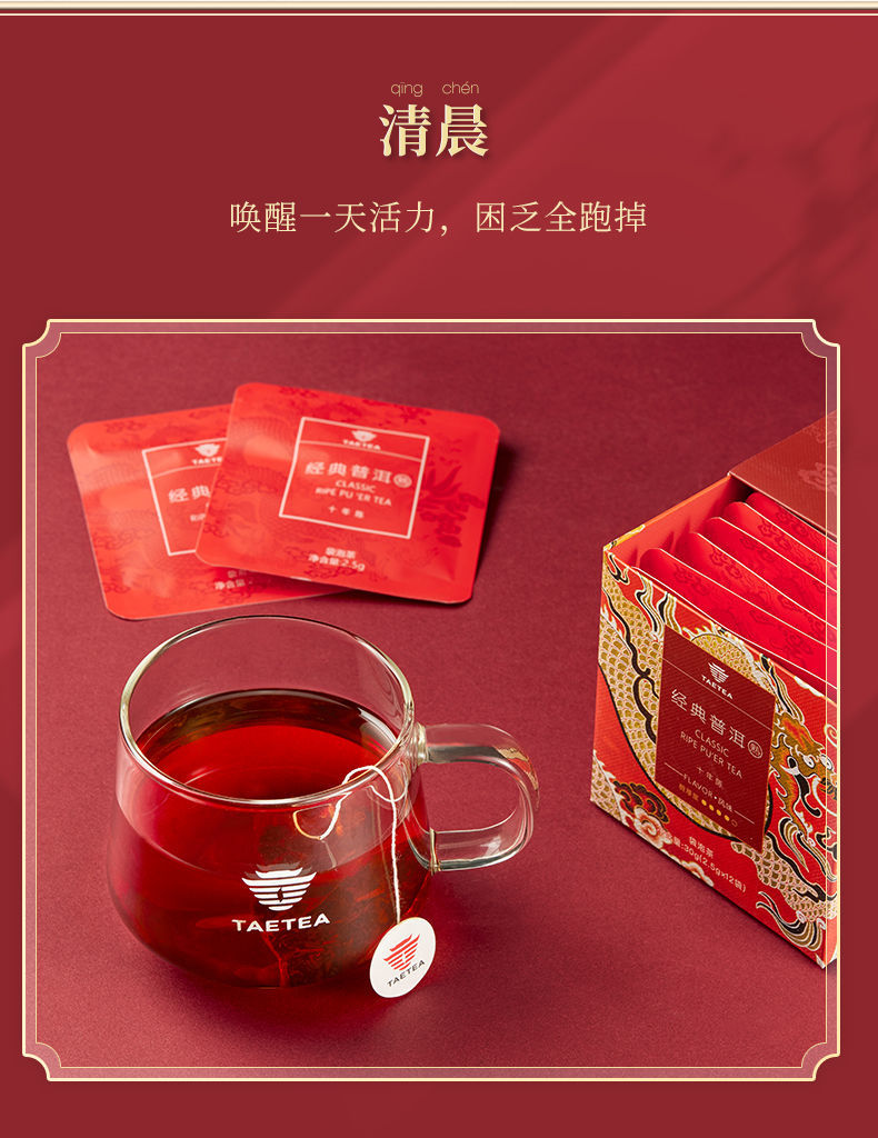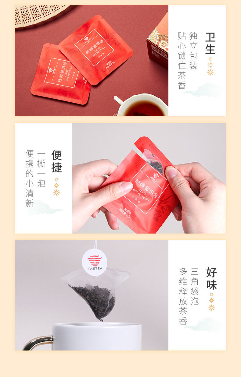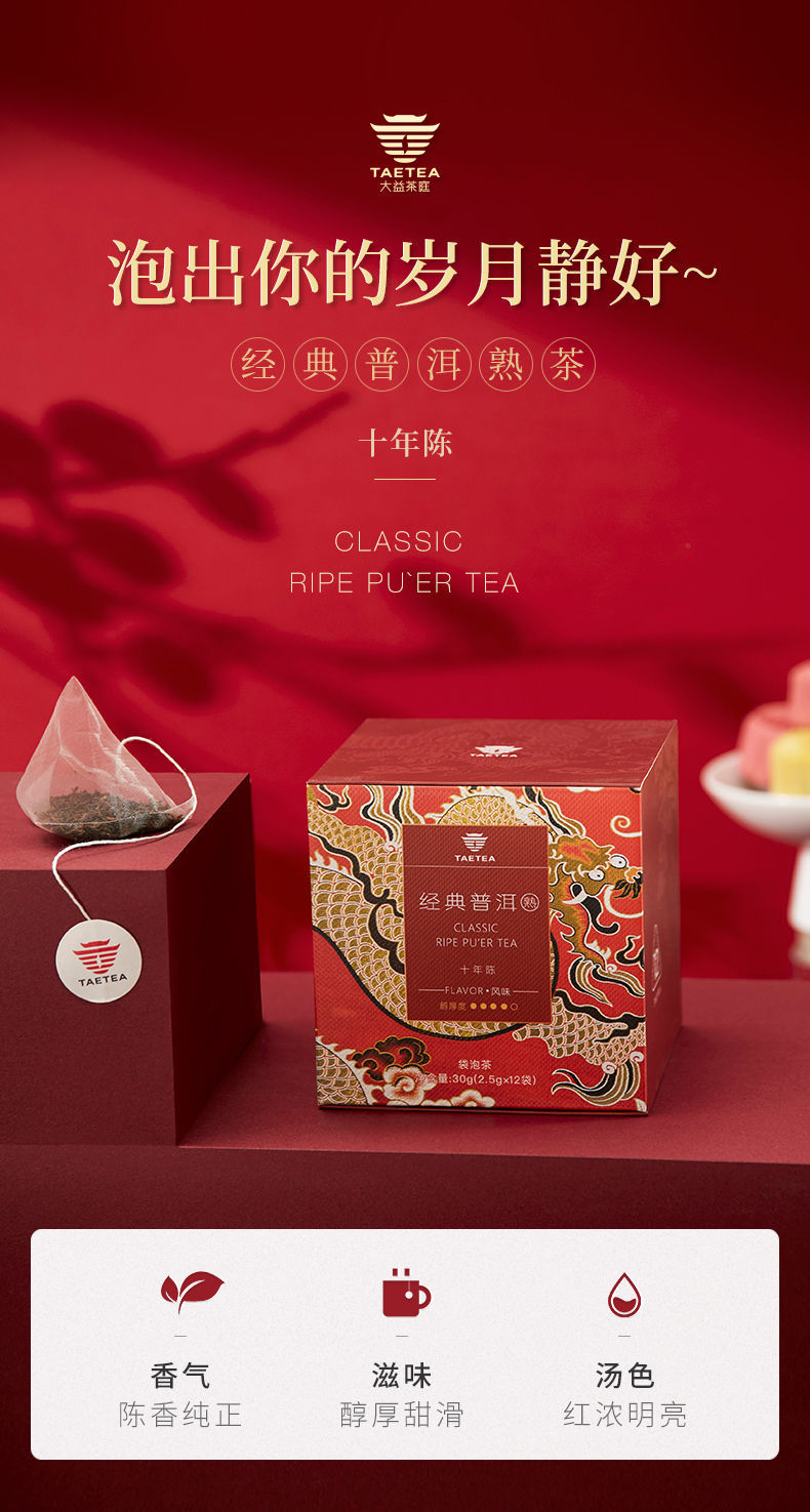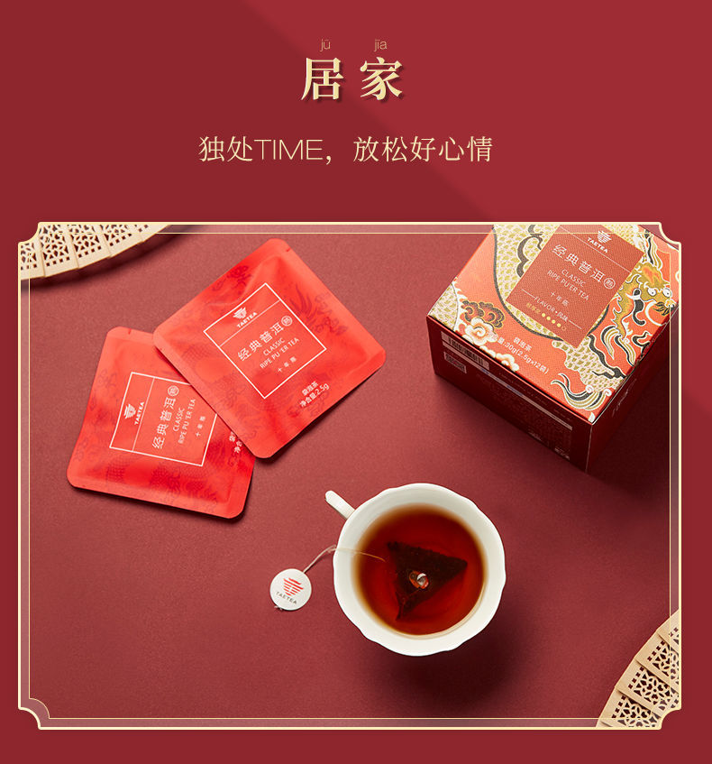 大益普洱茶 熟茶经典三角袋泡茶包盒装 2.5g*12袋单位:盒 红色