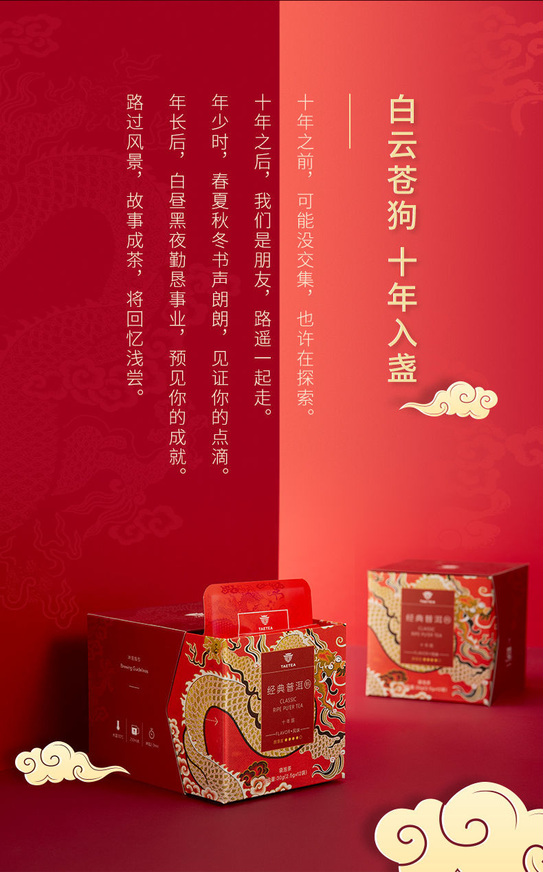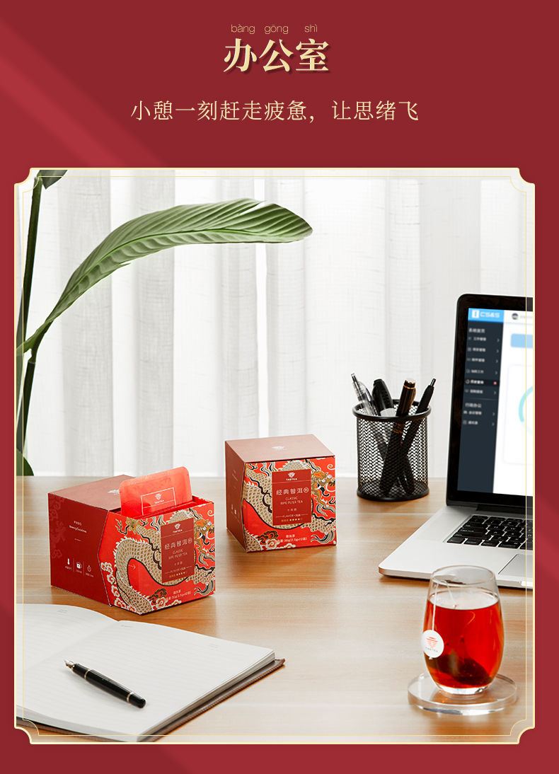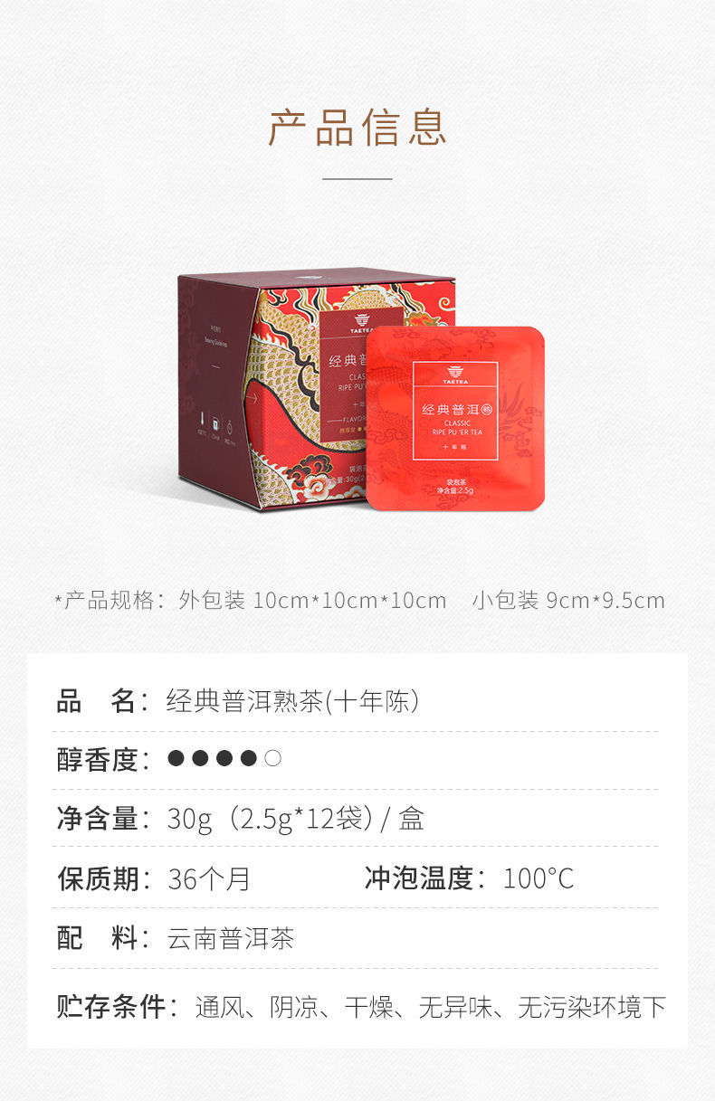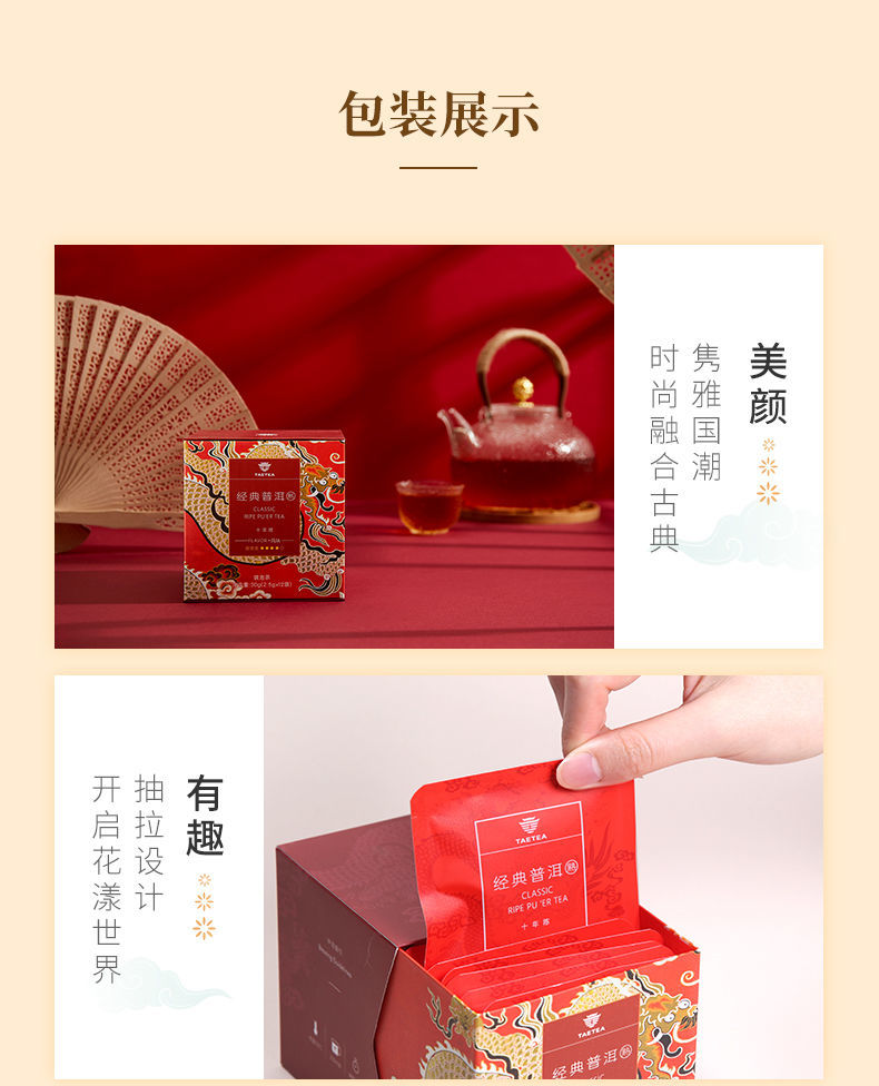 大益普洱茶 熟茶经典三角袋泡茶包盒装 2.5g*12袋单位:盒 红色