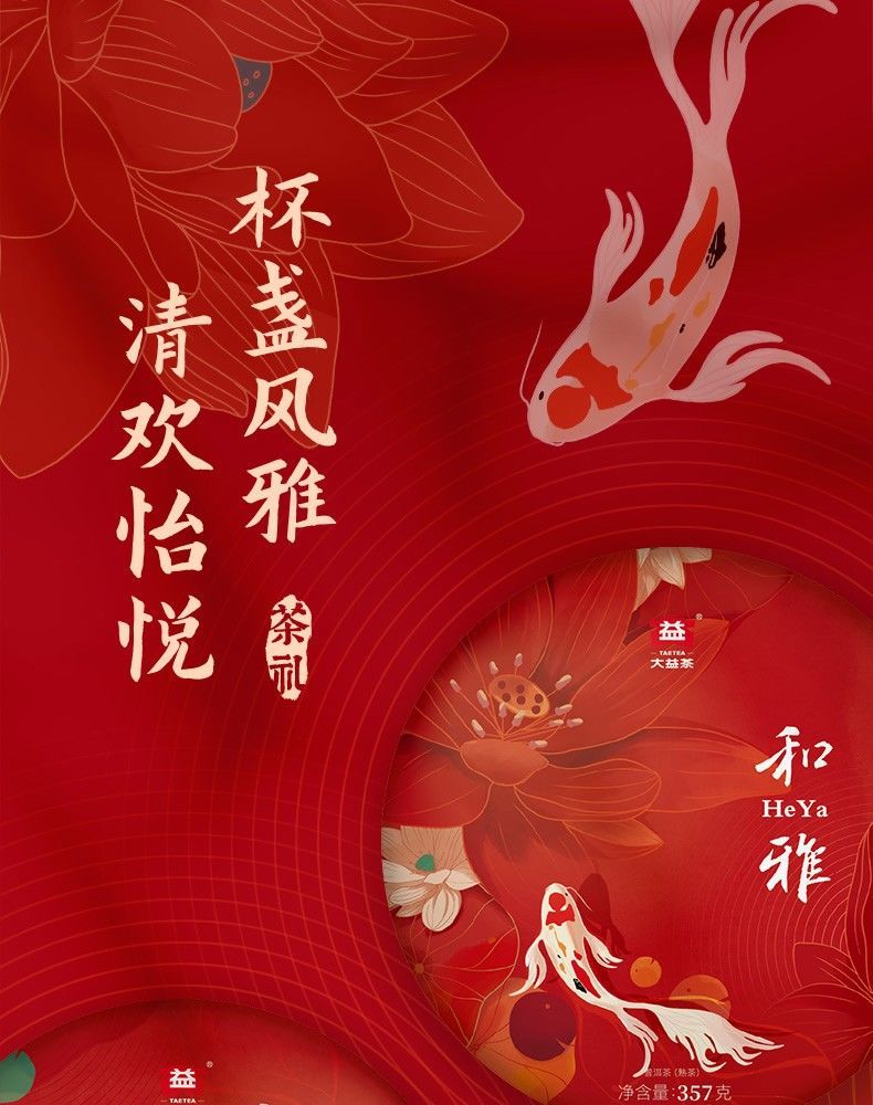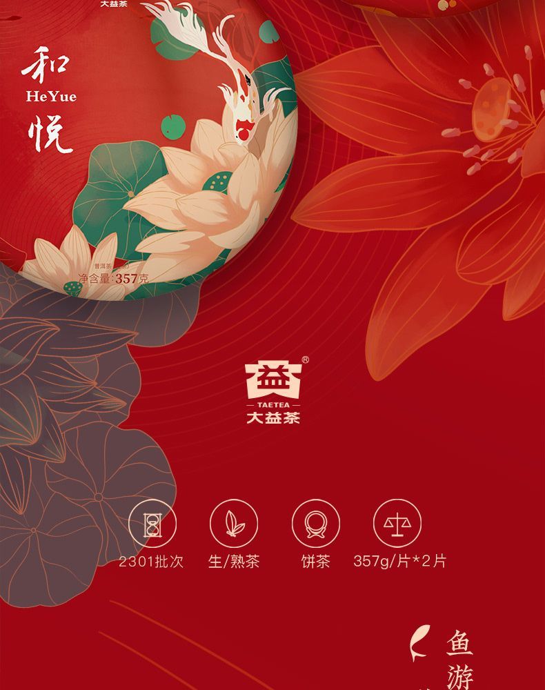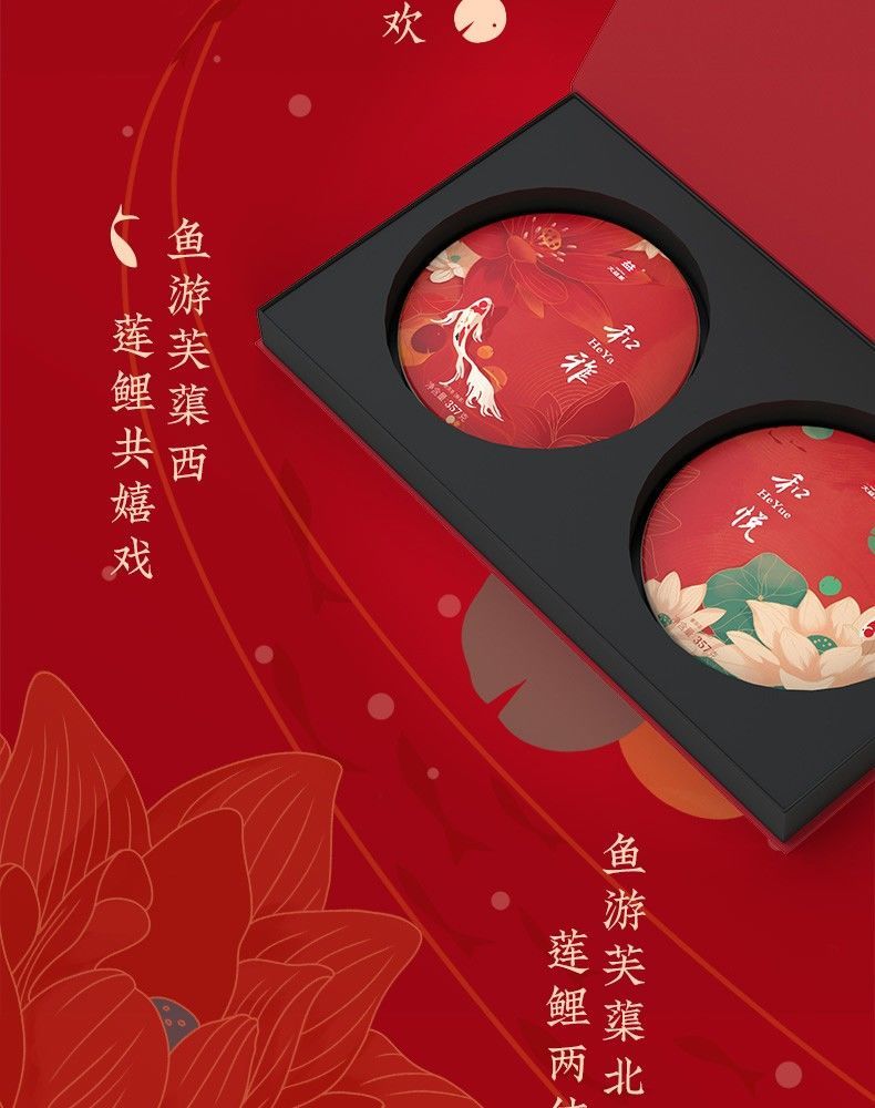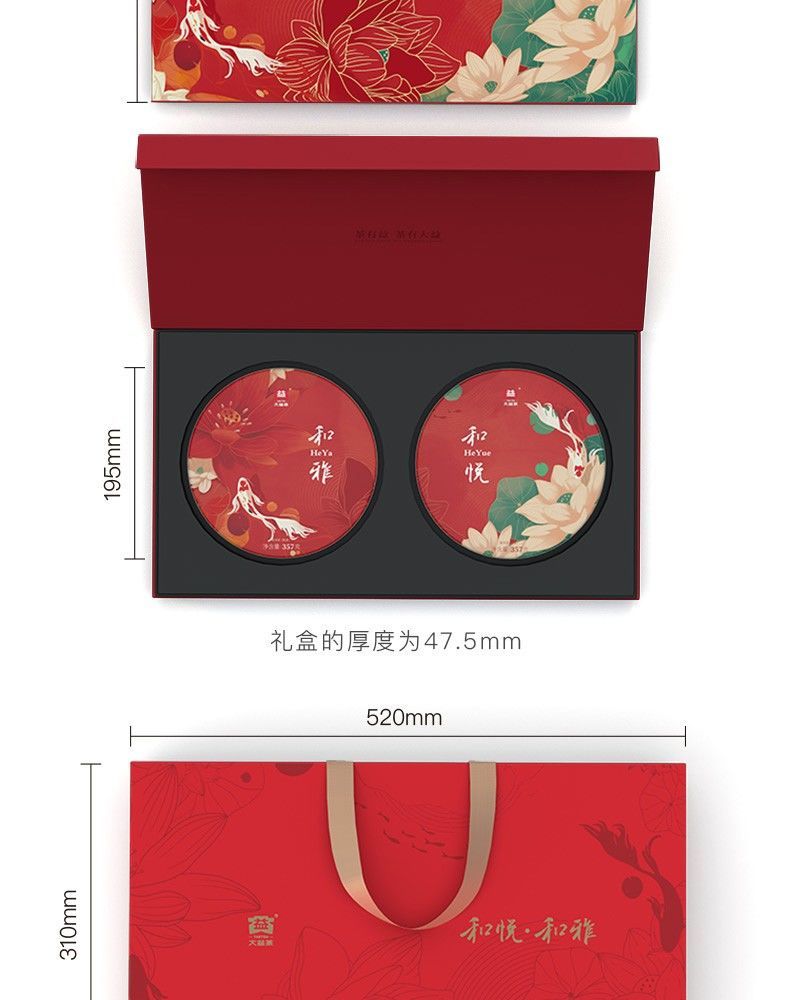 大益4年陈料和悦和雅生熟茶组合357g*2单位:盒 红色