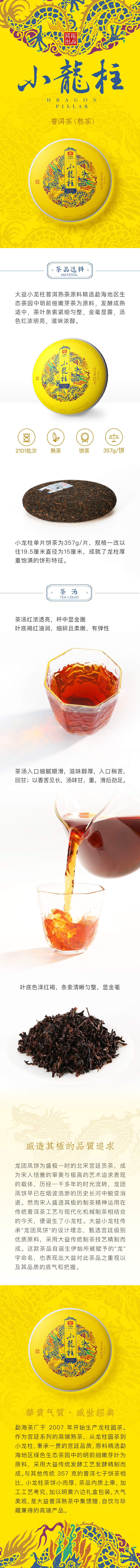 大益普洱茶熟茶小龙柱饼茶357g单位:饼 黄色