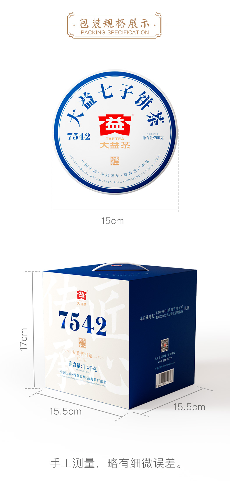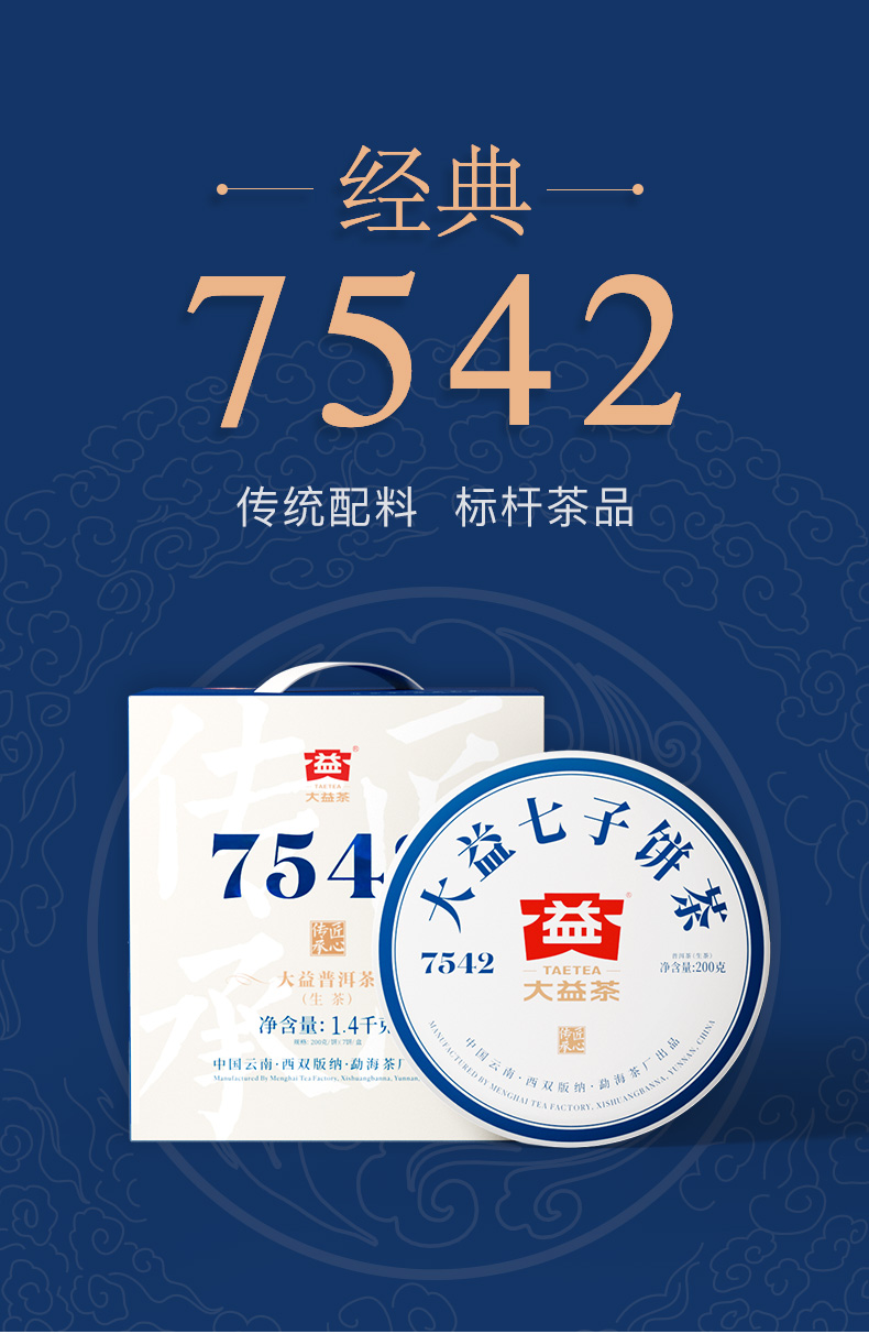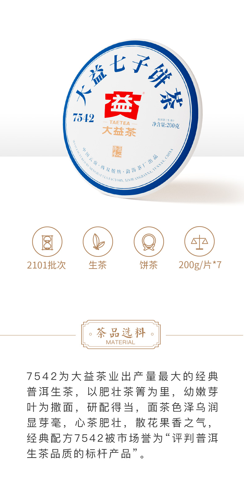 大益TAETEA茶叶普洱茶生茶7542饼茶提装礼盒单位:提 白色