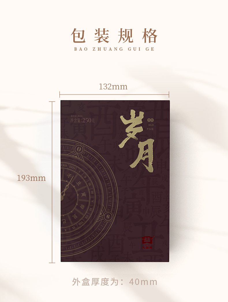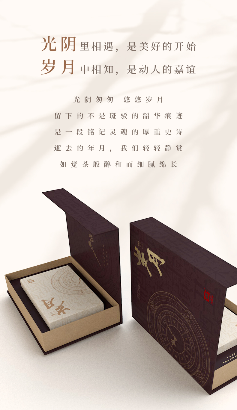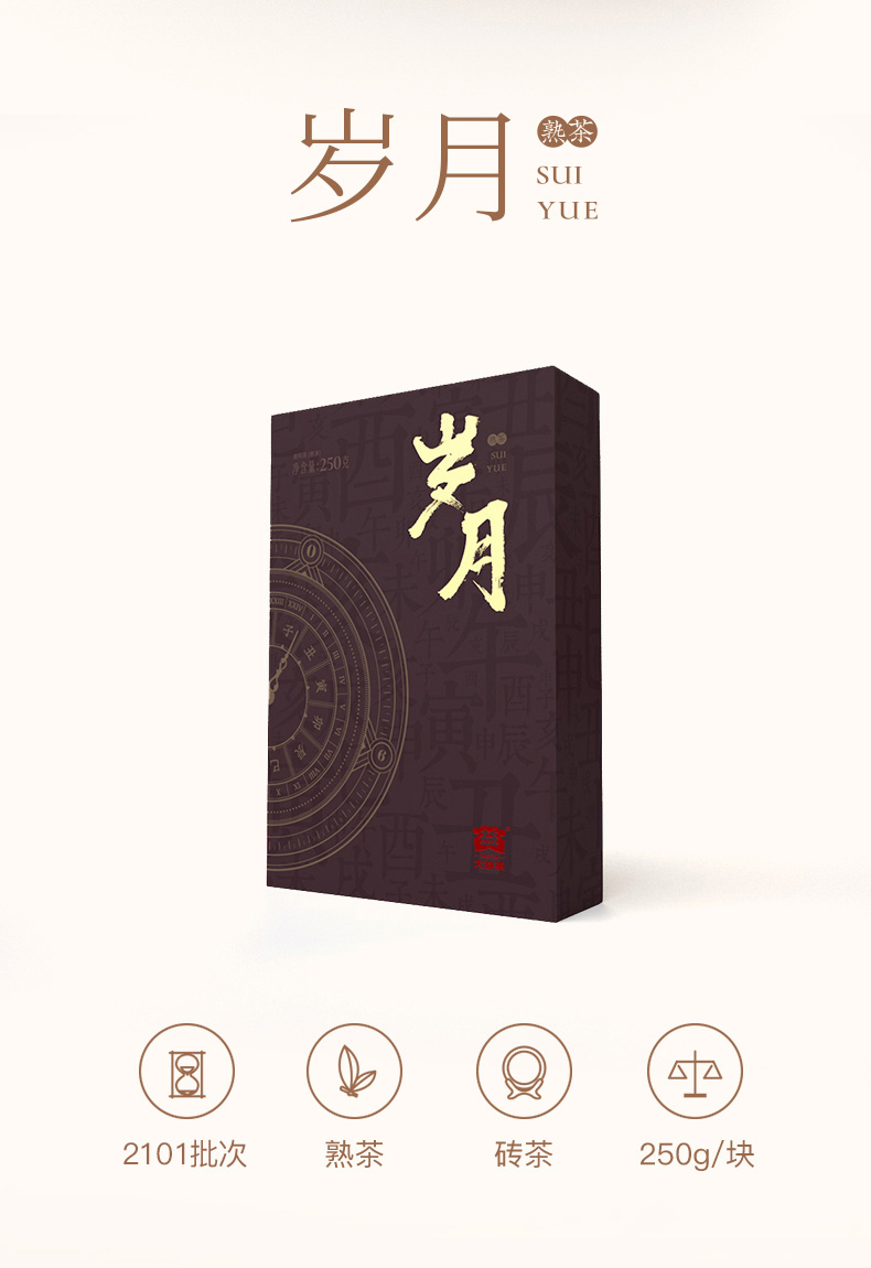 大益TAETEA茶叶普洱茶熟茶岁月砖茶礼盒 250g 褐色