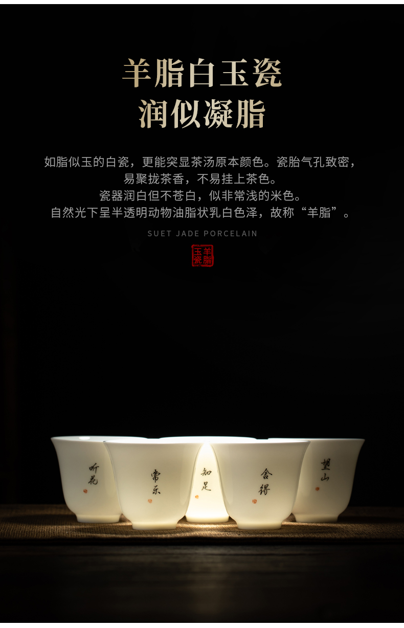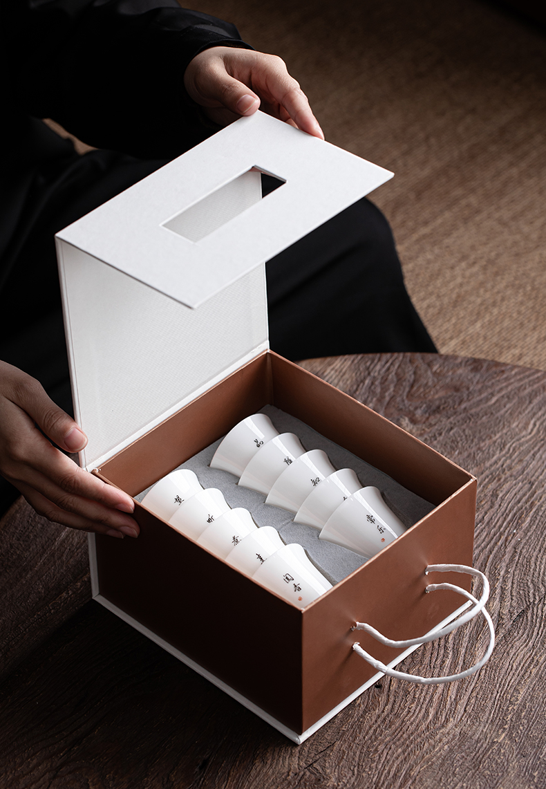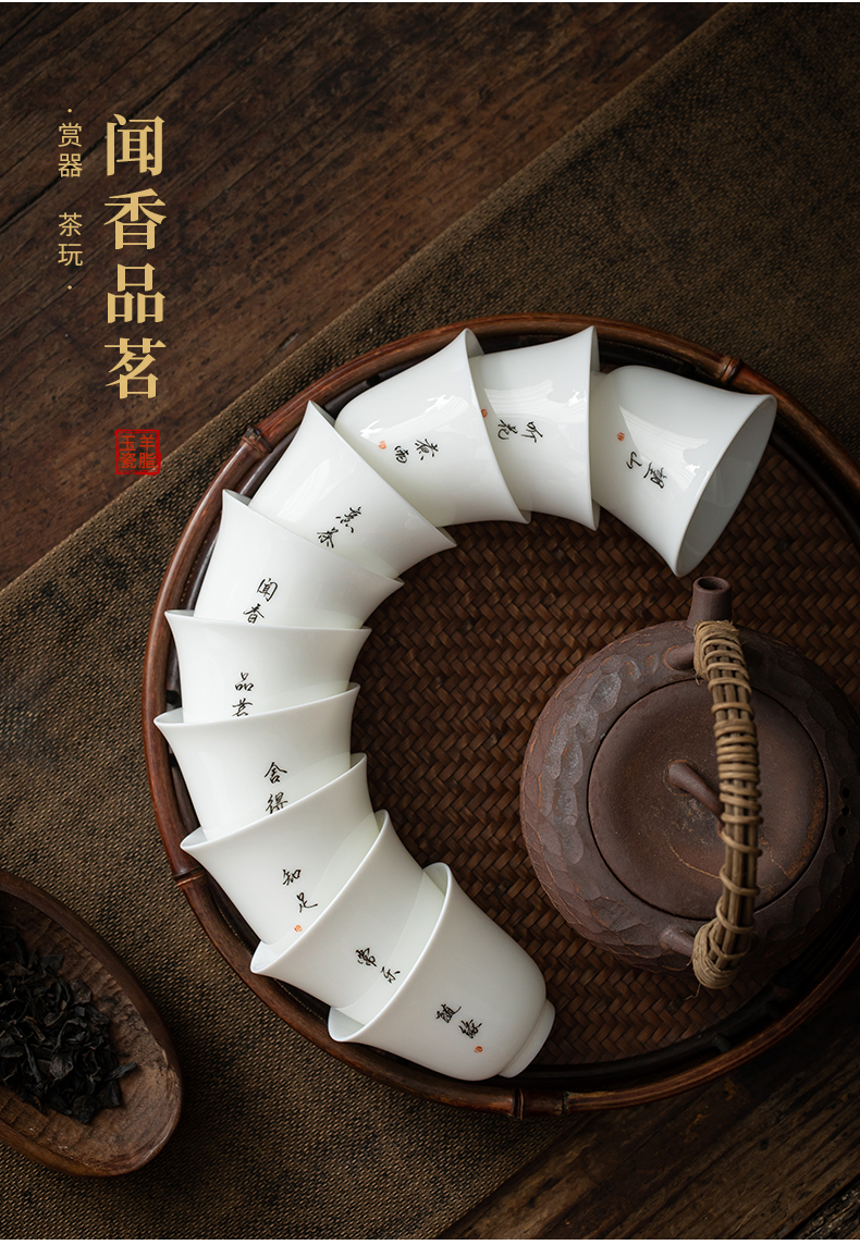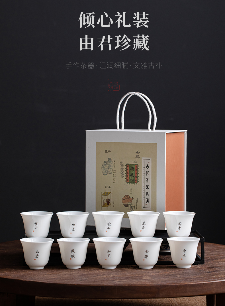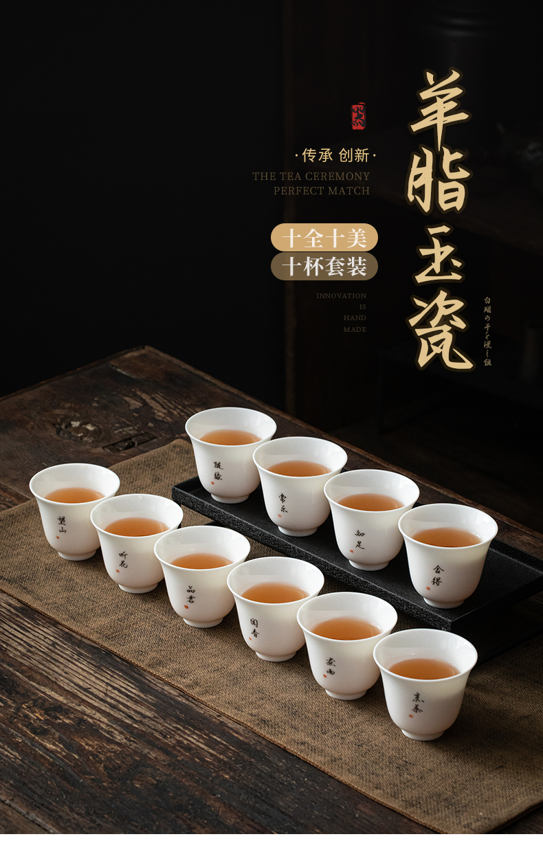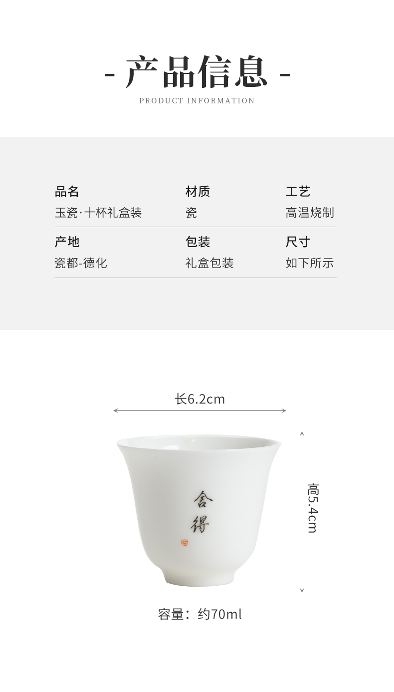 苏氏陶瓷(SUSHI CERAMICS)J0502中国白写意禅茶十全十美茶杯10个装礼盒(单位:套) 白色