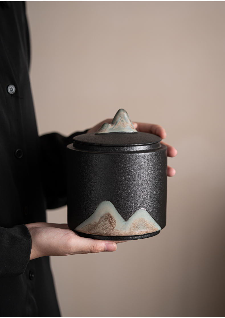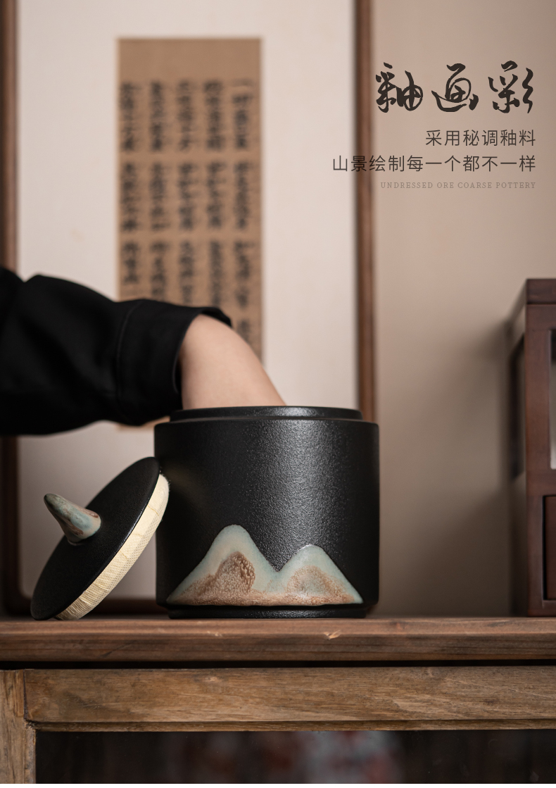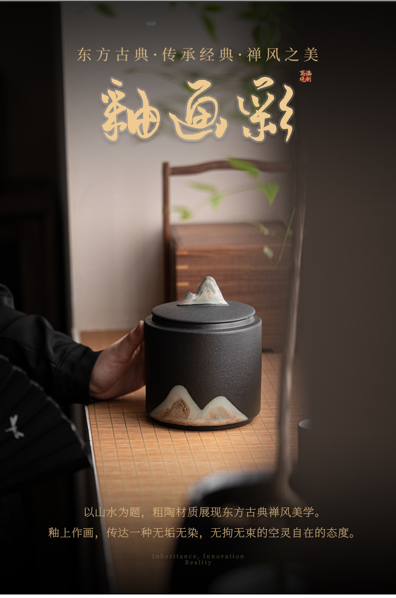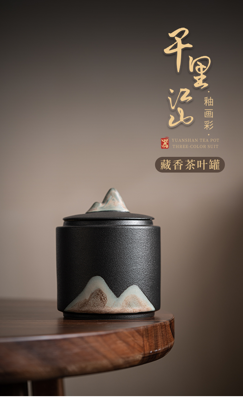 苏氏陶瓷(SUSHI CERAMICS)J0708手绘釉画彩千里江山茶叶罐(单位:个) 黑色