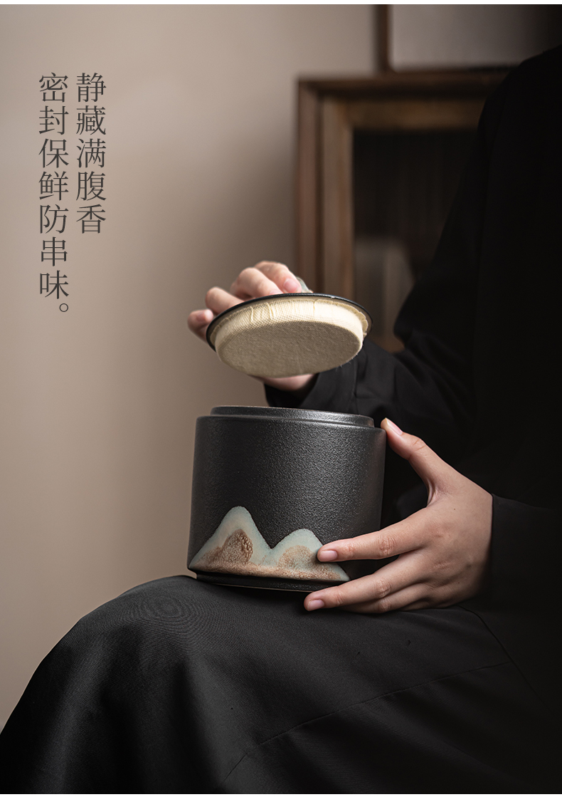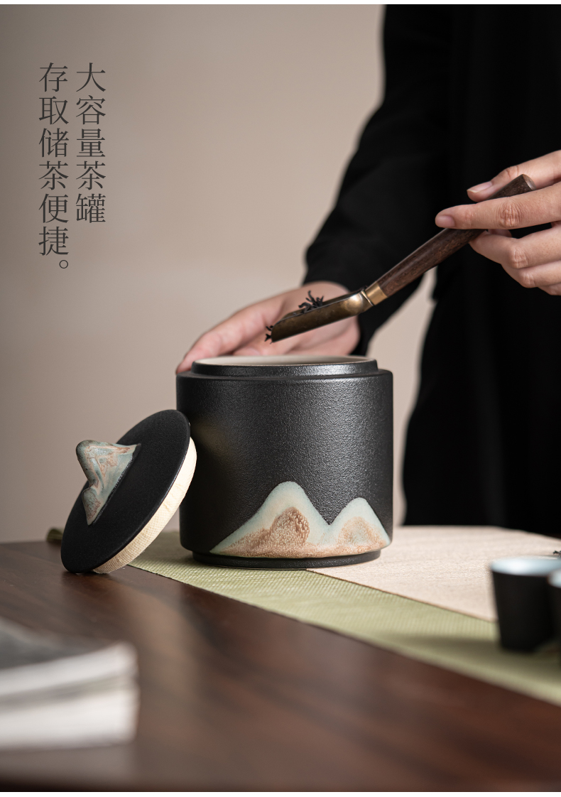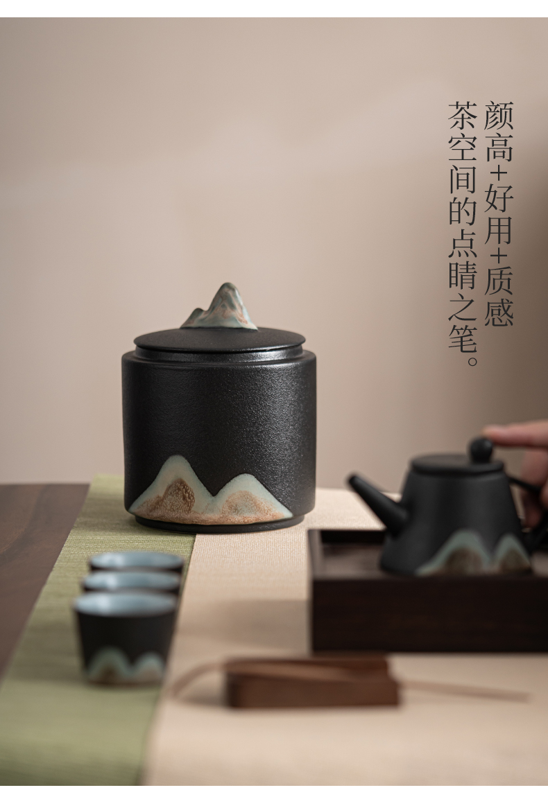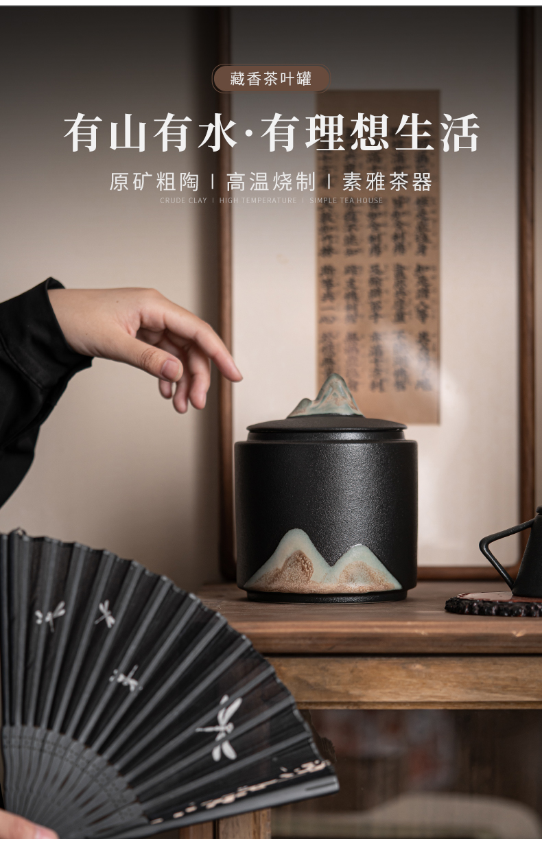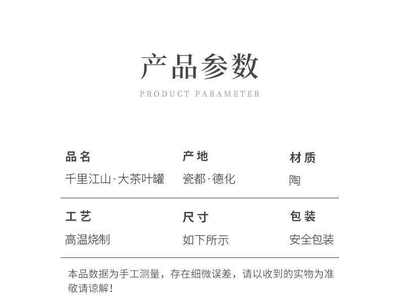 苏氏陶瓷(SUSHI CERAMICS)J0708手绘釉画彩千里江山茶叶罐(单位:个) 黑色