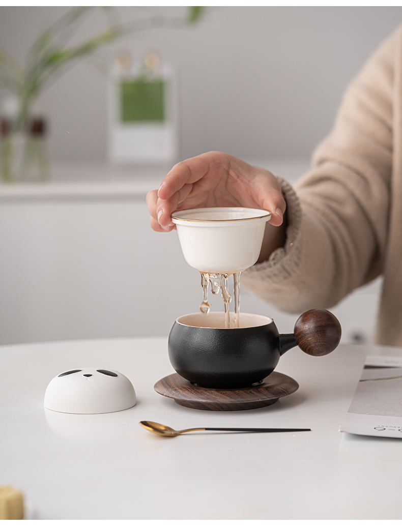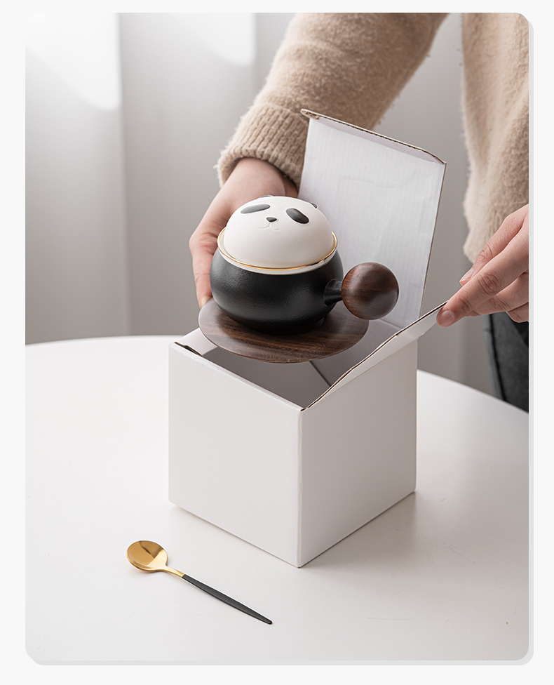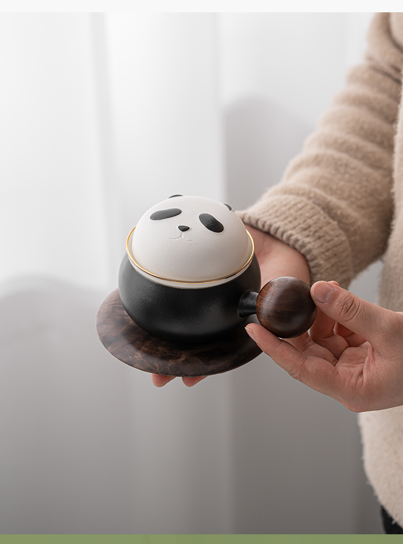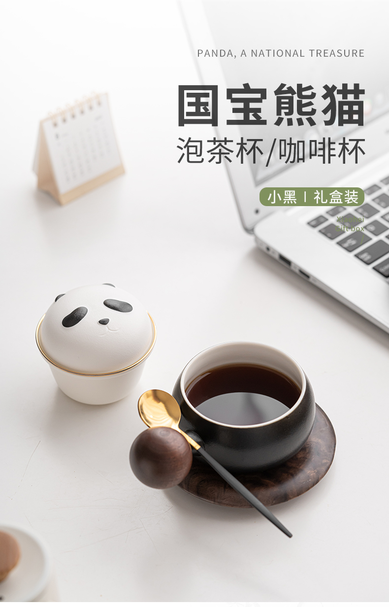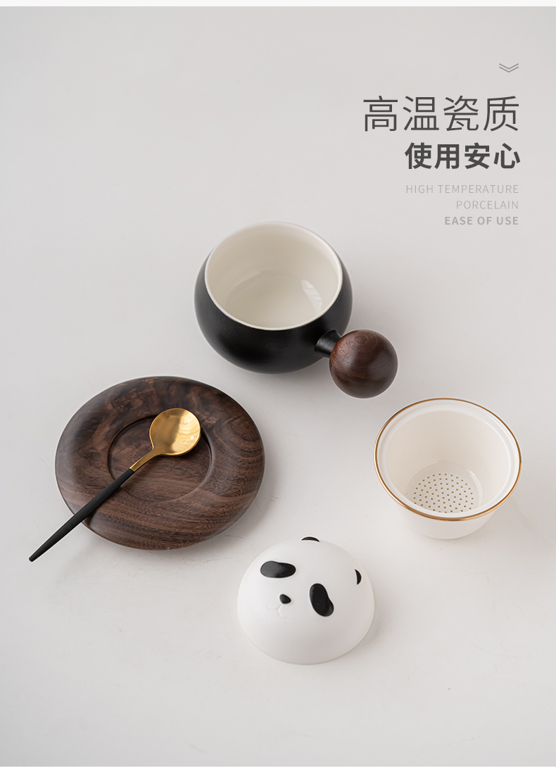 苏氏陶瓷(SUSHI CERAMICS)J0886熊猫茶水分离办公茶格杯咖啡杯(黑)(单位:个) 黑白色