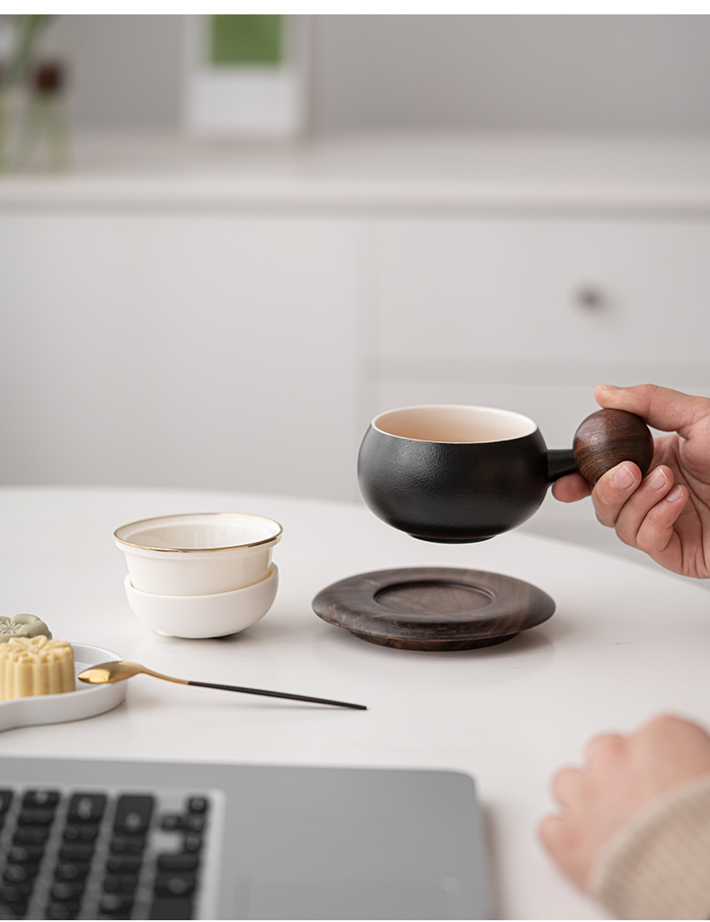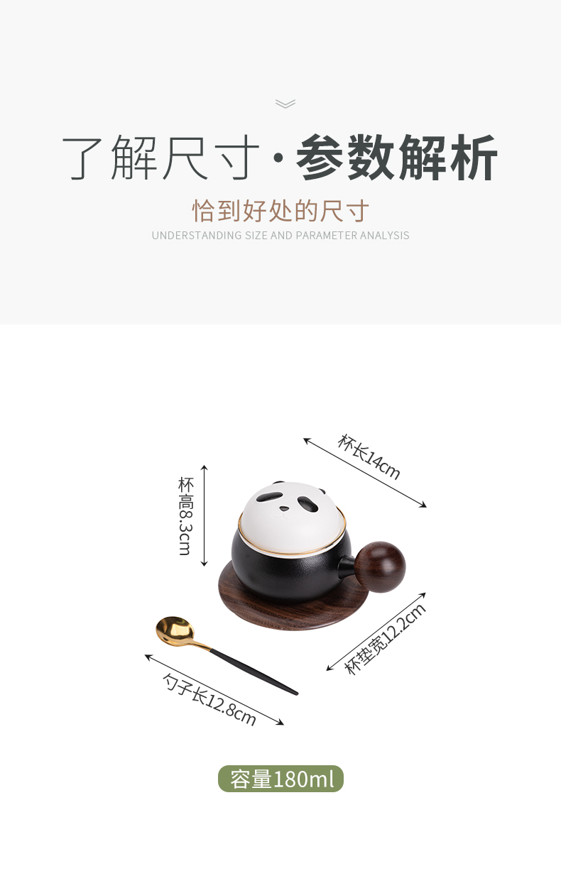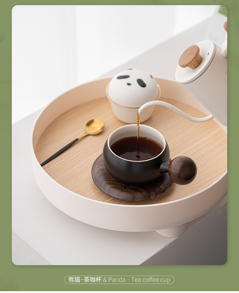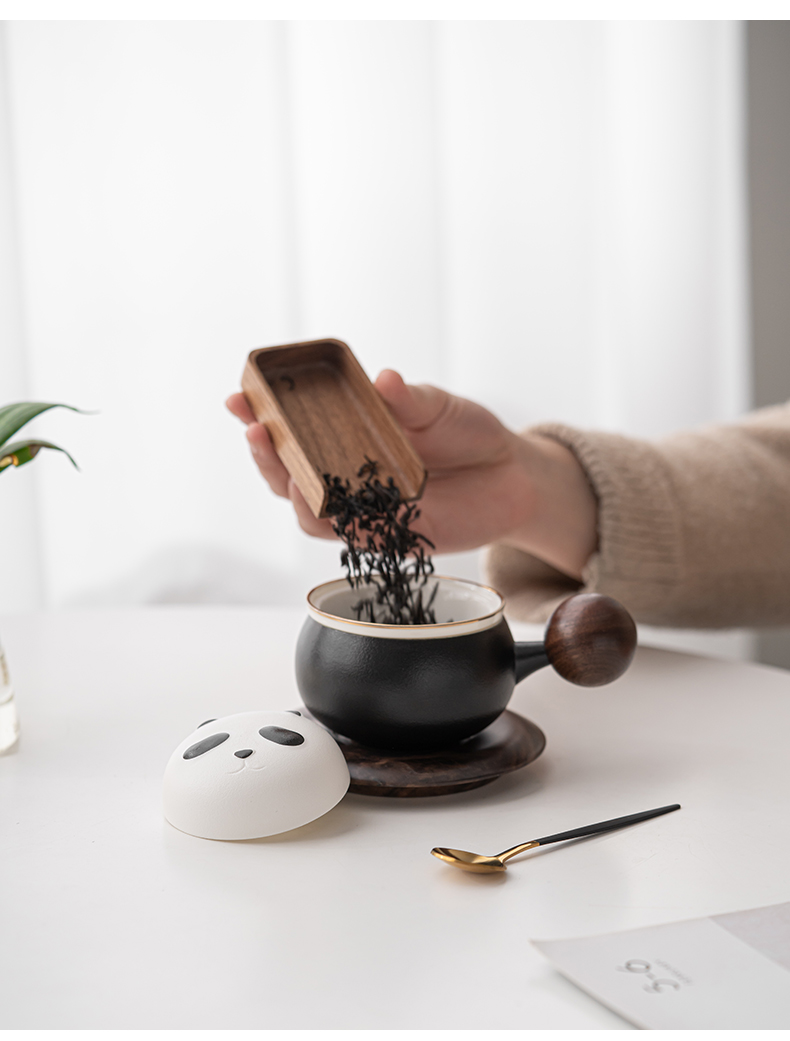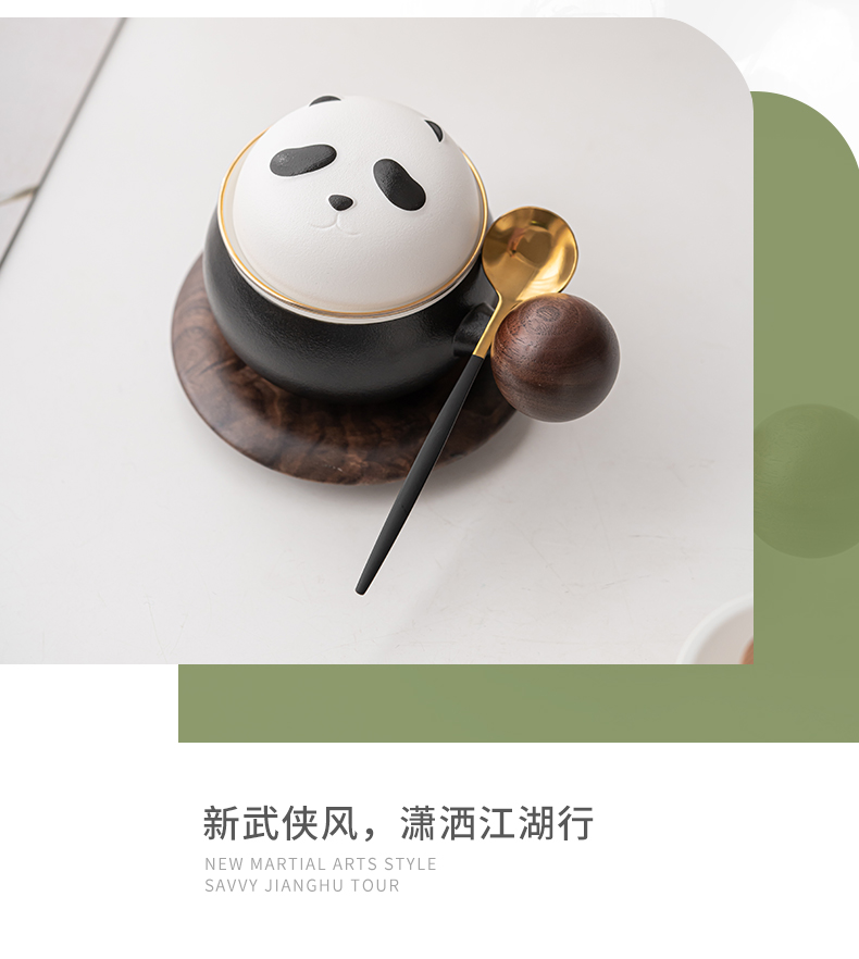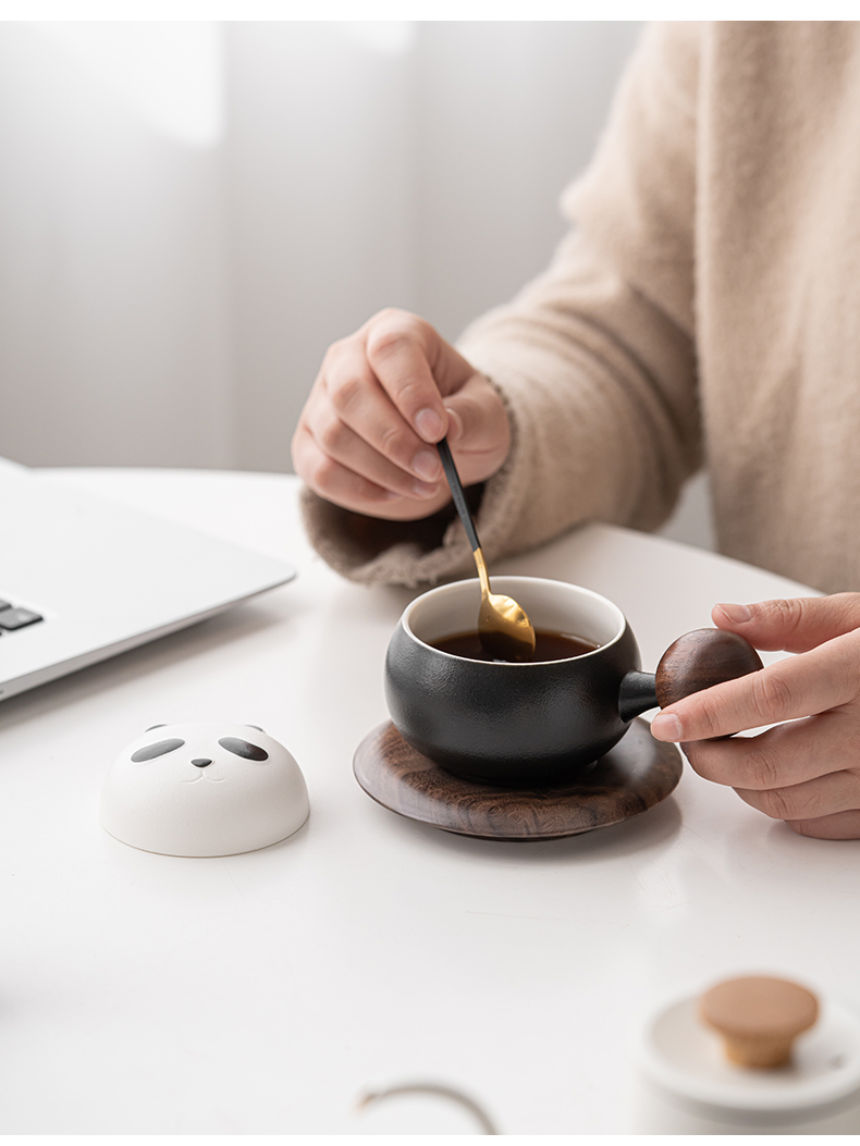 苏氏陶瓷(SUSHI CERAMICS)J0886熊猫茶水分离办公茶格杯咖啡杯(黑)(单位:个) 黑白色