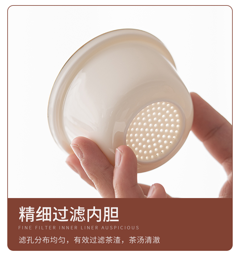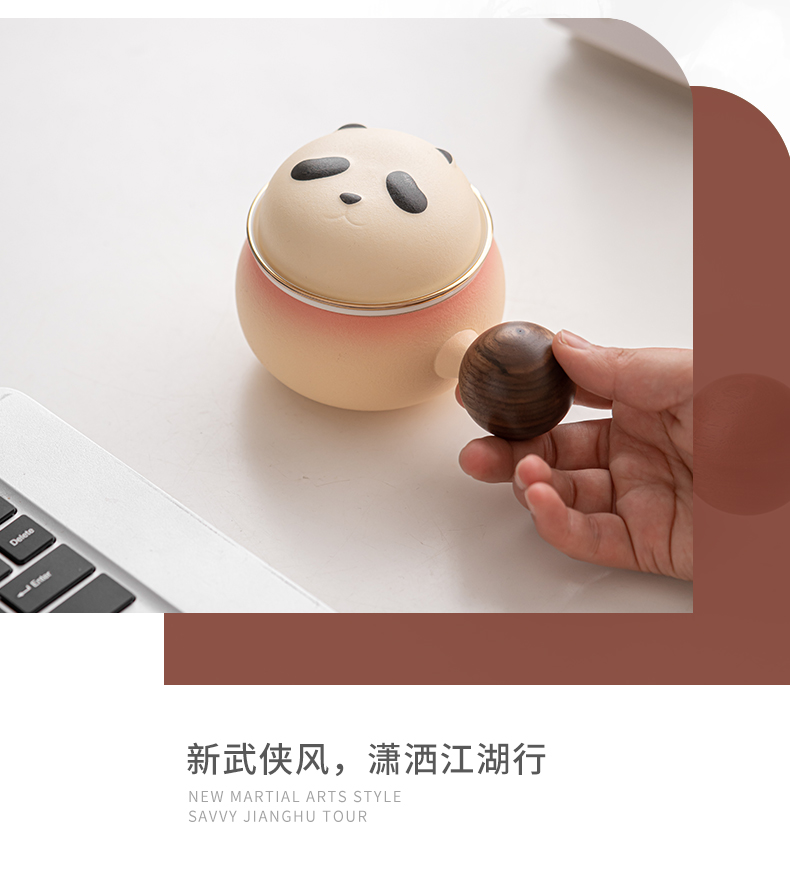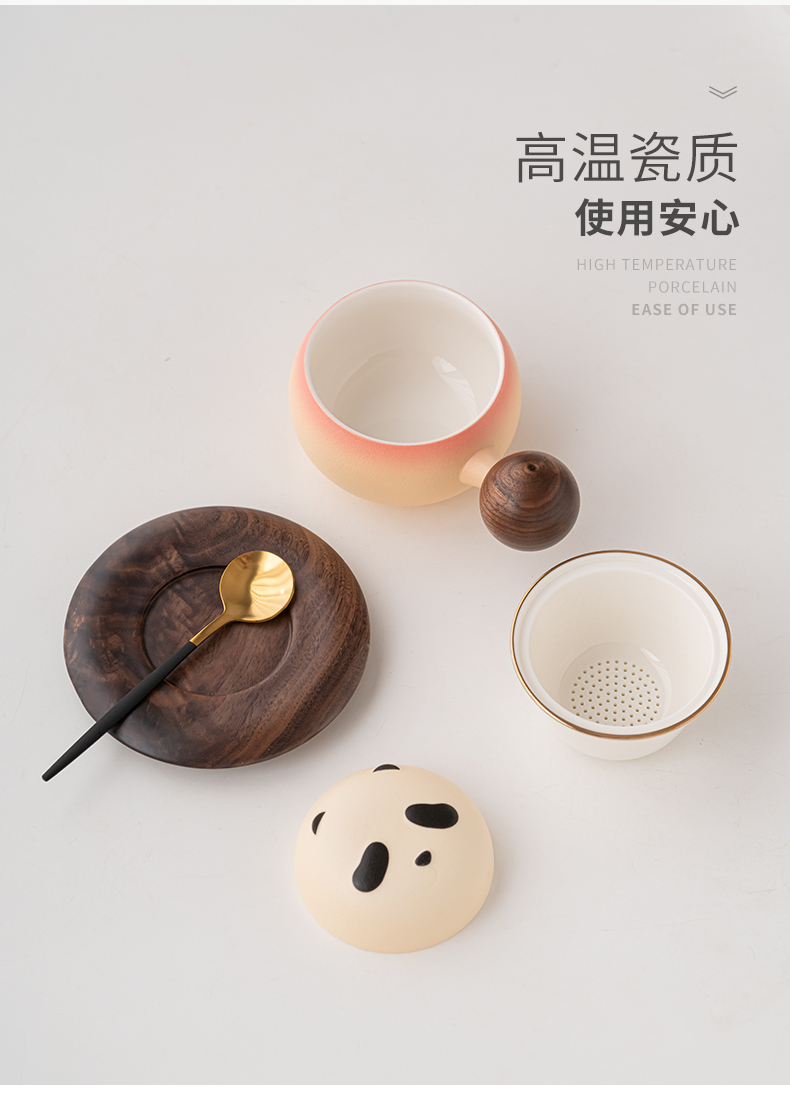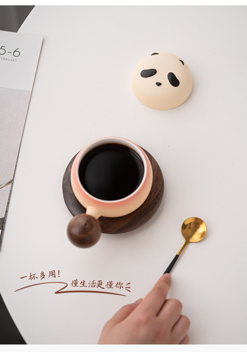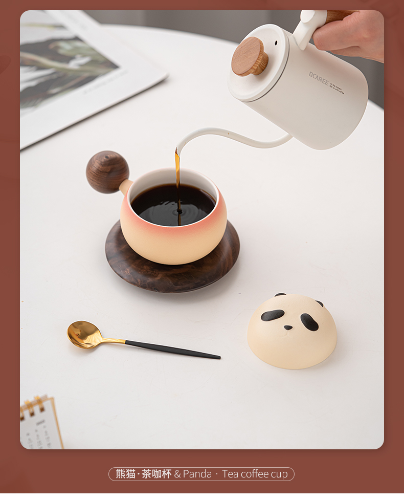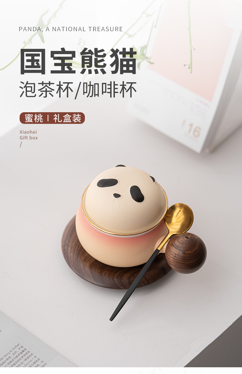 苏氏陶瓷(SUSHI CERAMICS)J0887熊猫茶水分离办公茶格杯咖啡杯(单位:个) 蜜桃粉