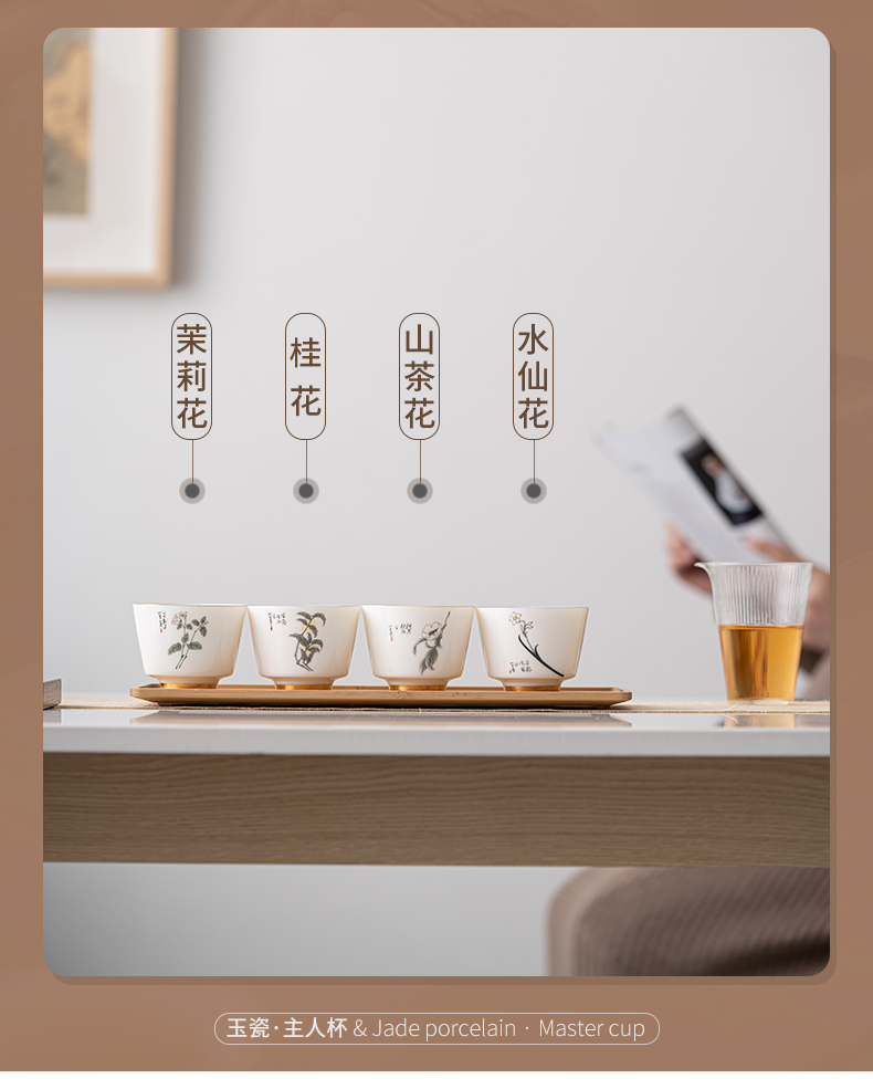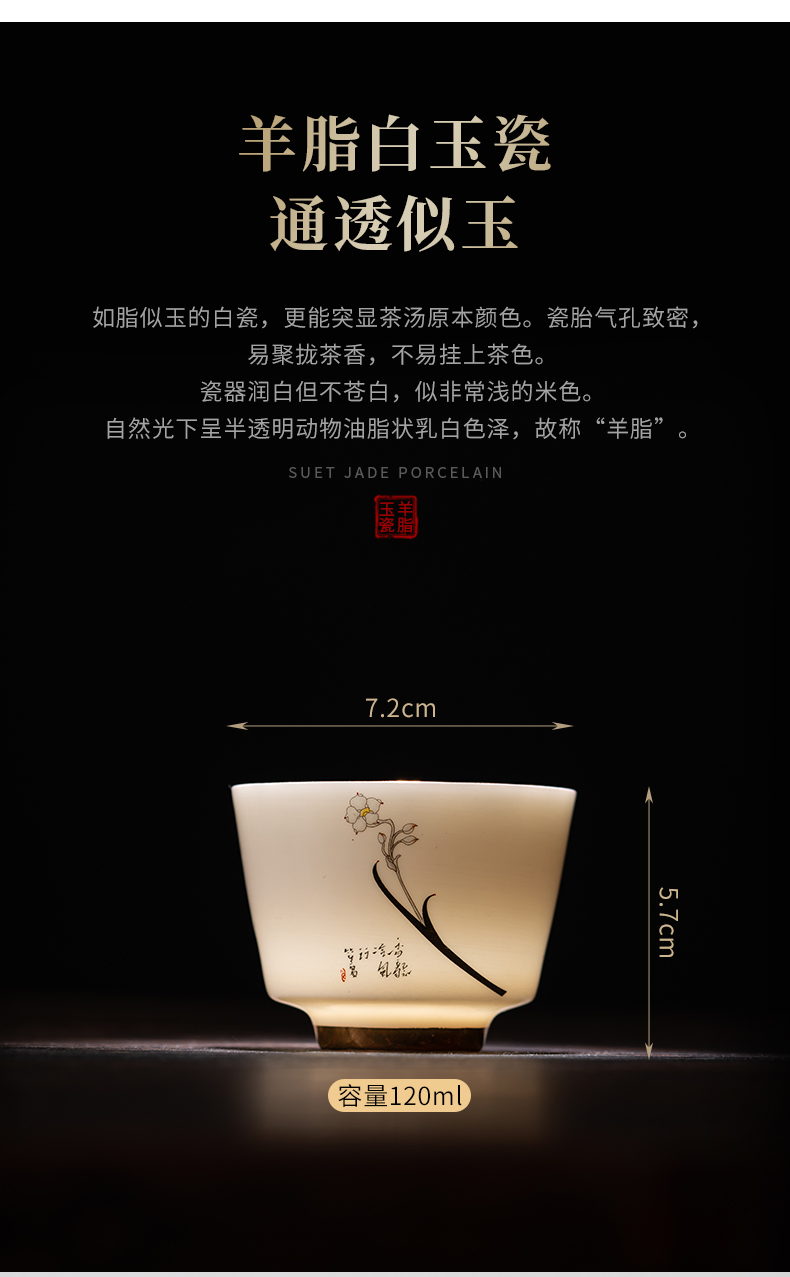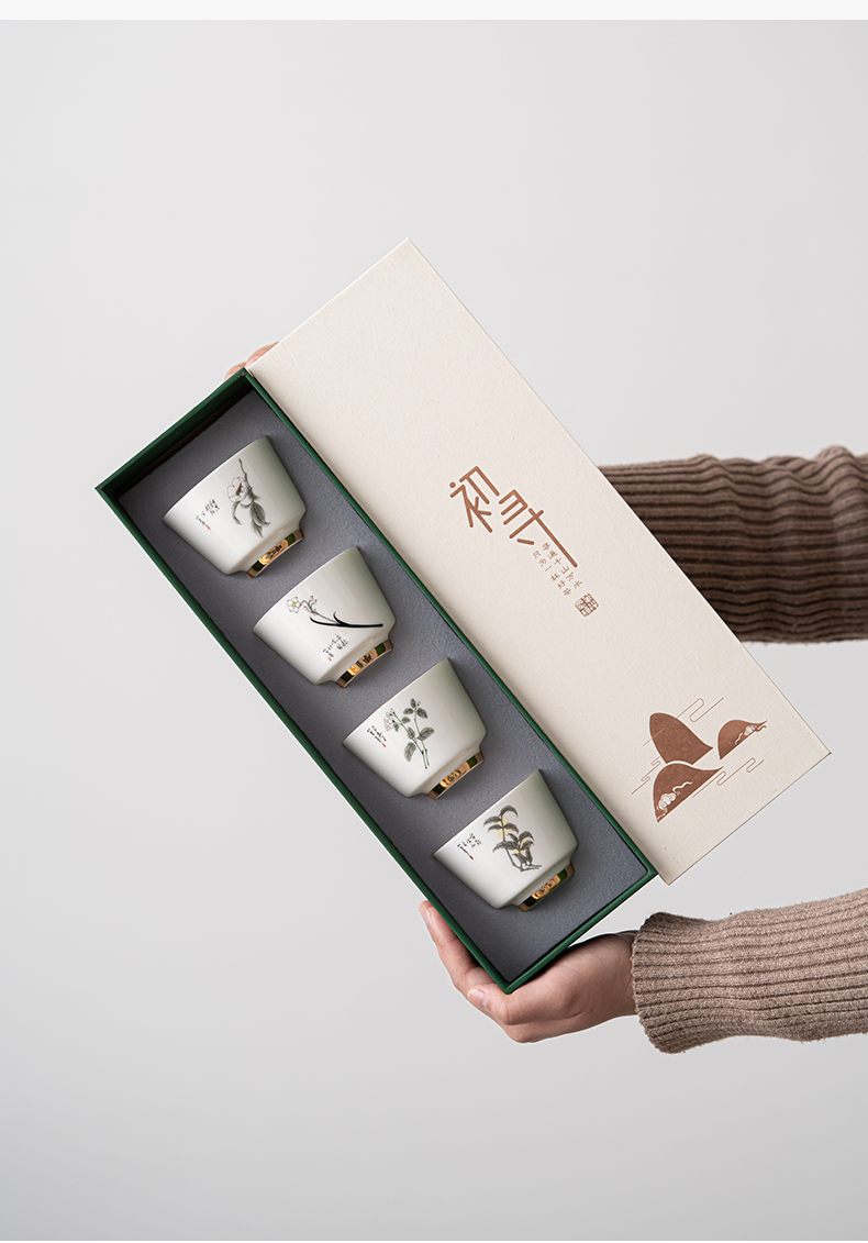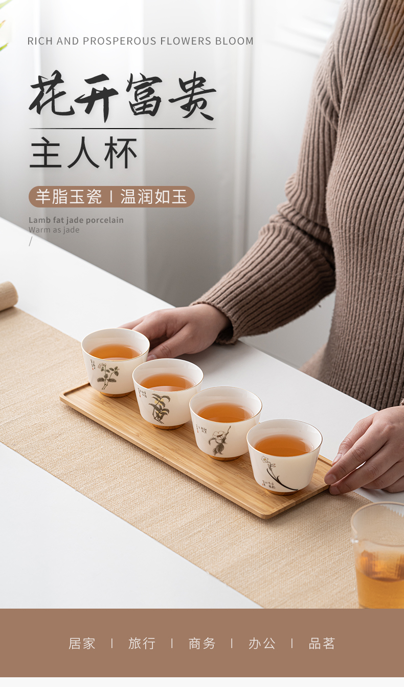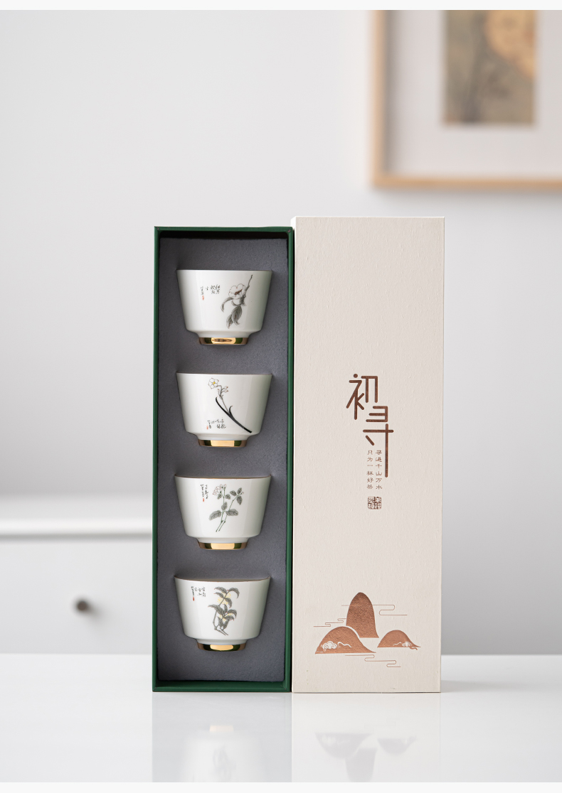 苏氏陶瓷(SUSHI CERAMICS)J0894羊脂玉瓷花开富贵主人杯4个礼盒装(单位:套) 白色