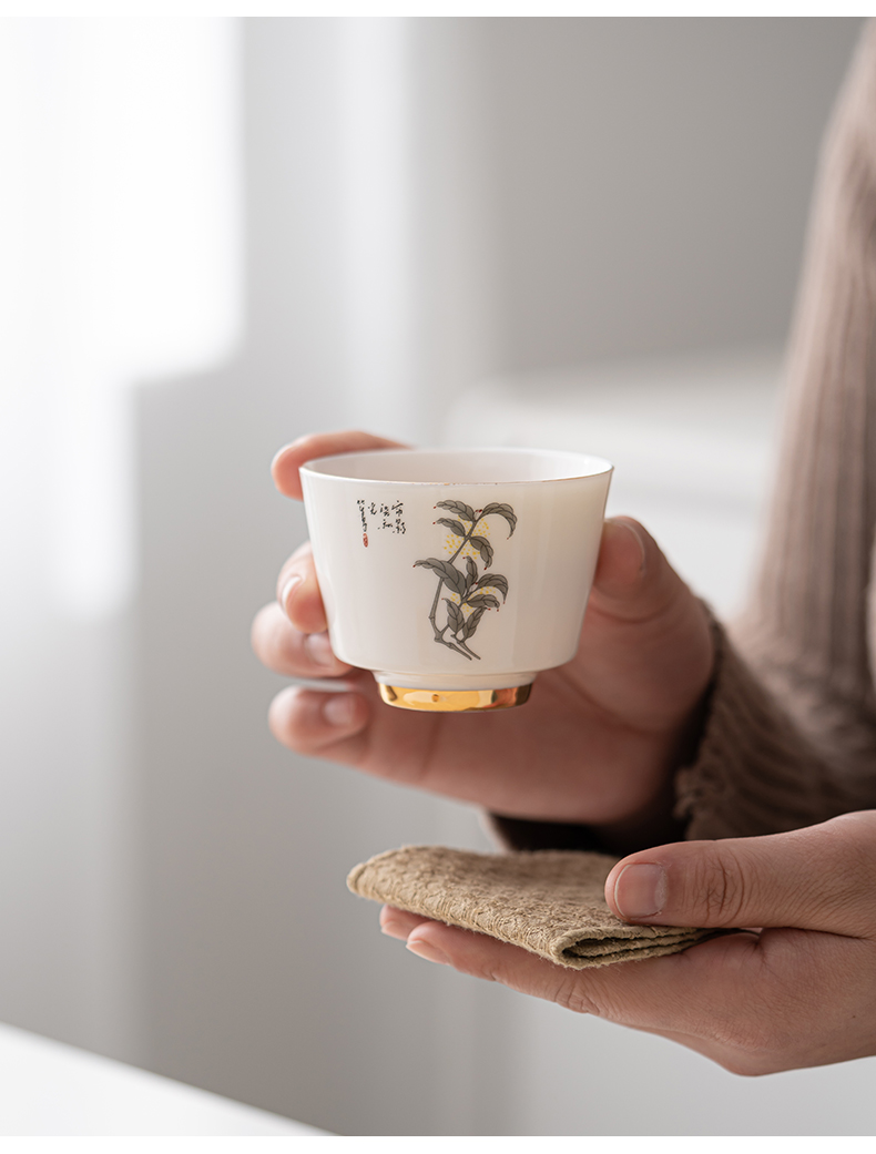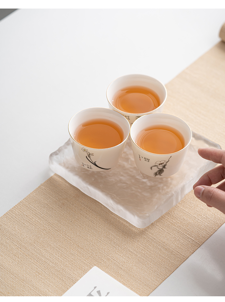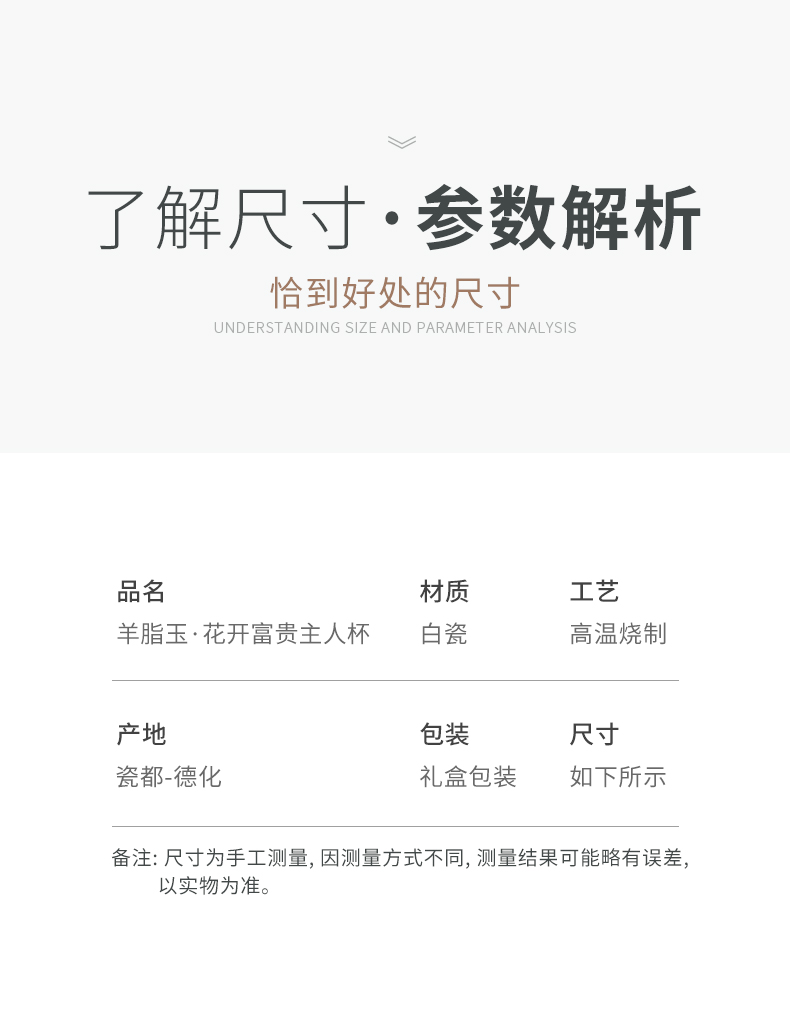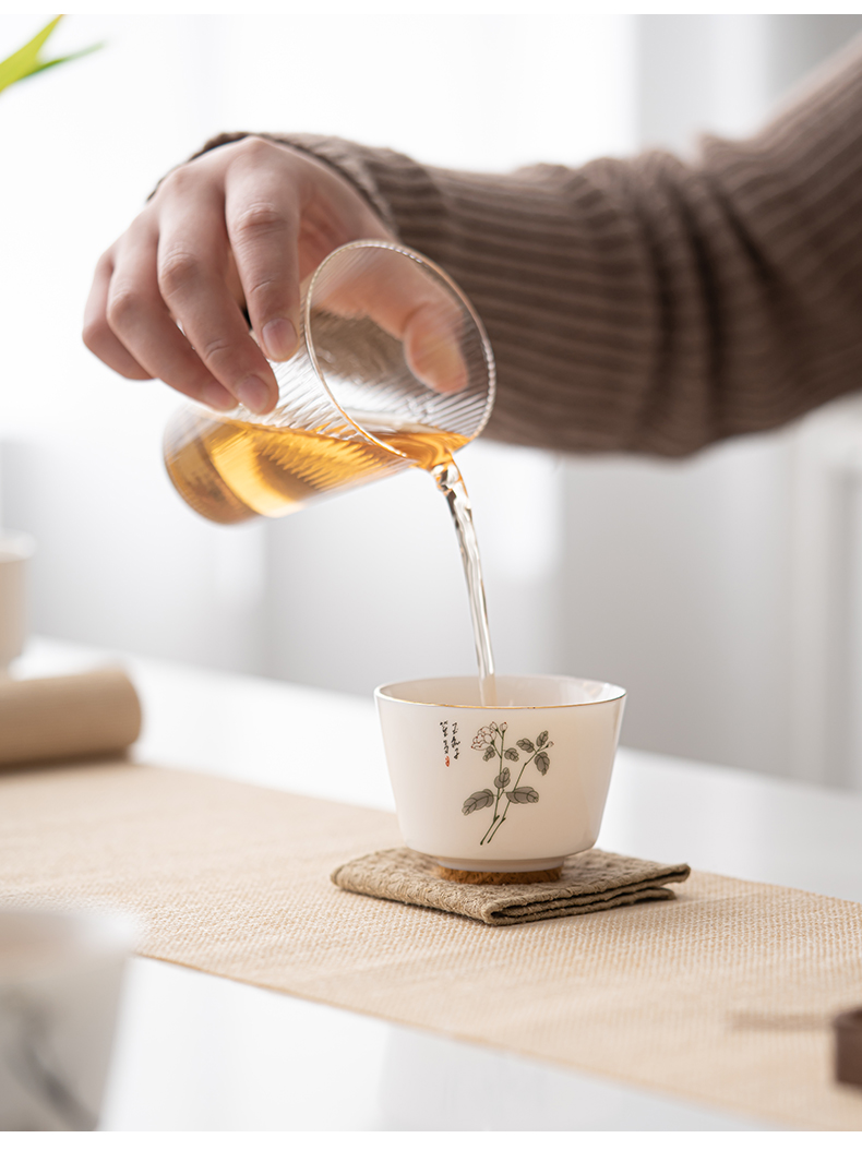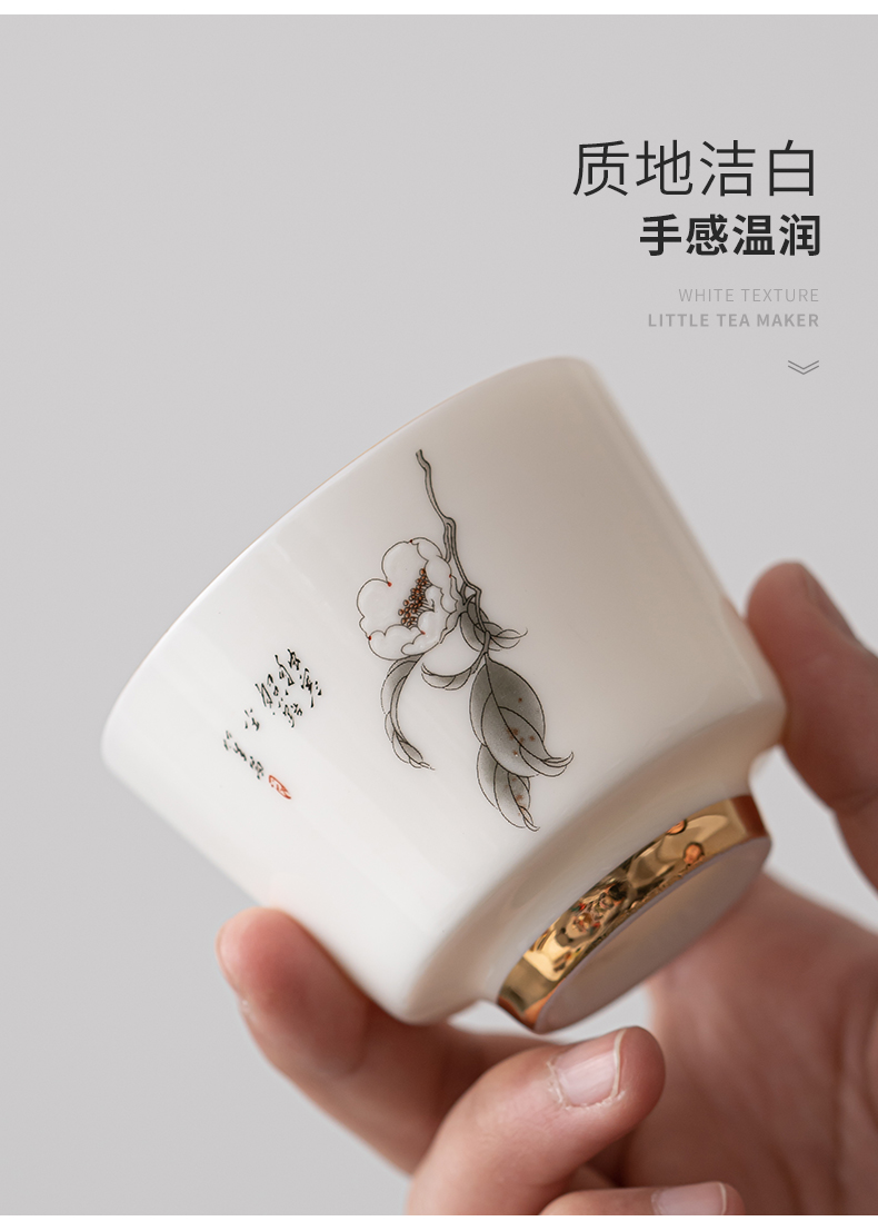 苏氏陶瓷(SUSHI CERAMICS)J0894羊脂玉瓷花开富贵主人杯4个礼盒装(单位:套) 白色